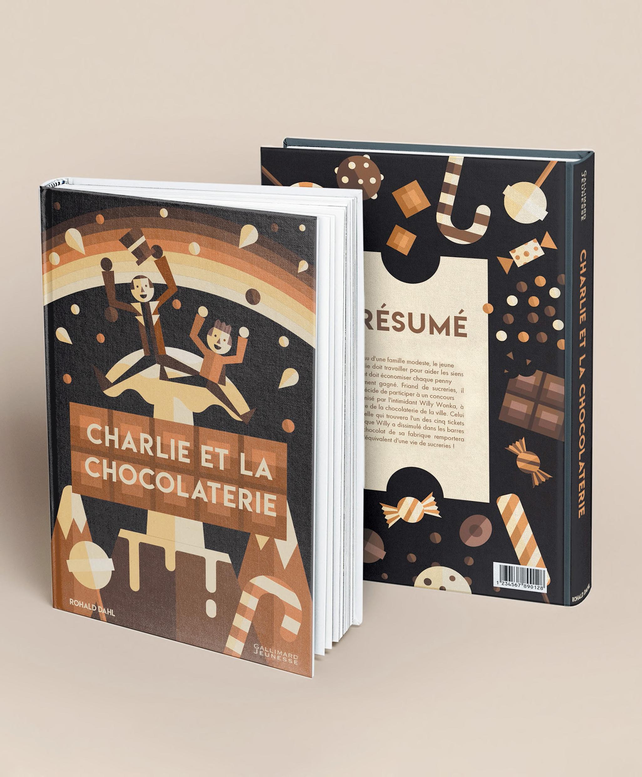 Réalisation d’une refonte graphique du célèbre livre de Roald Dahl, Charlie et la Chocolaterie. Ce nouveau style illustratif apporte un aspect plus contemporain au livre, tout en conservant un aspect enfantin en accord avec l’histoire.
