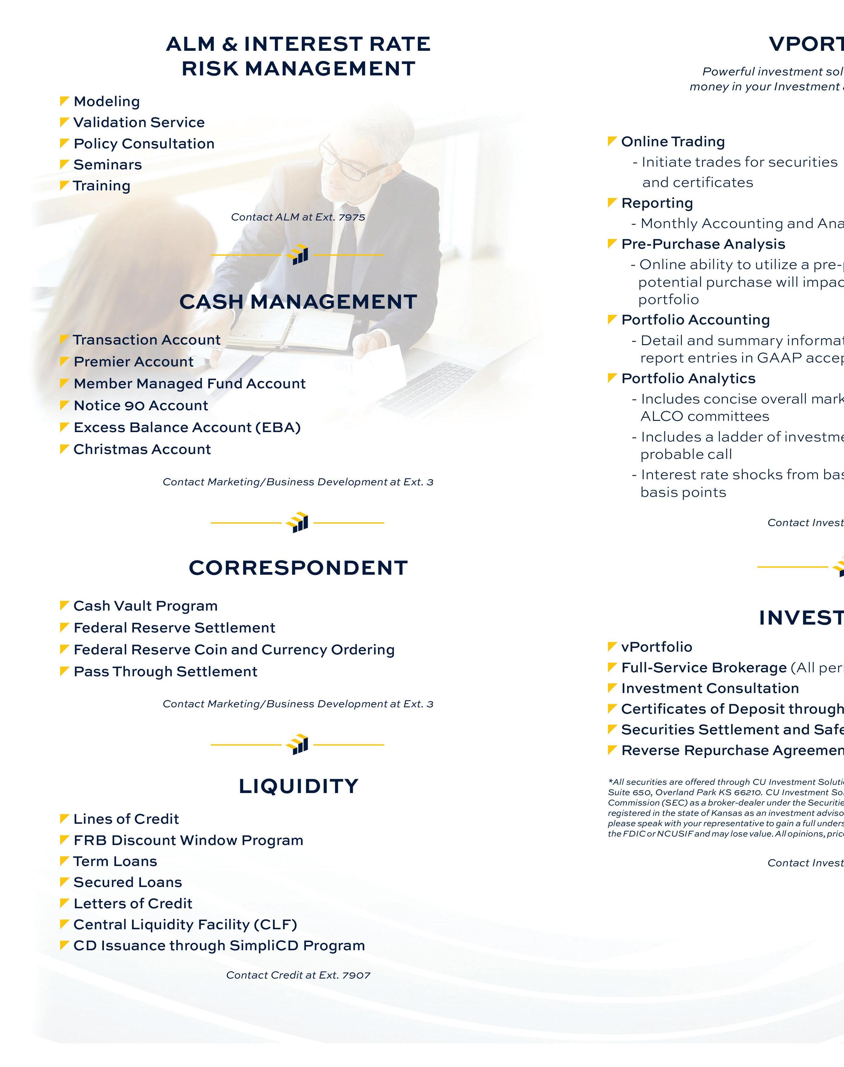 VolCorp’sALCO meets monthly overseeing asset-liability management, investments, and credit risk.The commi ee monitors liquidity to ensure funds are available to members in times of need, while also allowing earnings and growth opportunities for both the corporate and member credit unions.A review of the audited financial statements indicates operations are sound.VolCorp is well-positioned to serve its members in 2025 and for many years to come.