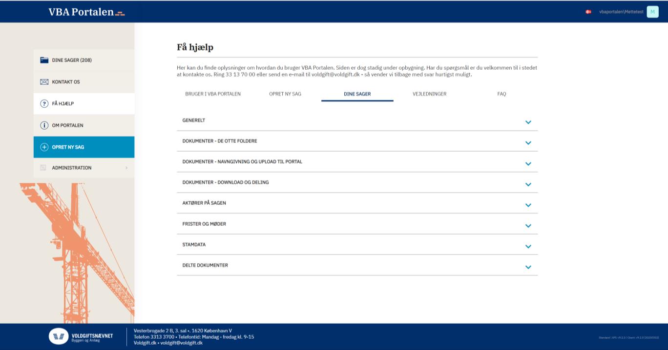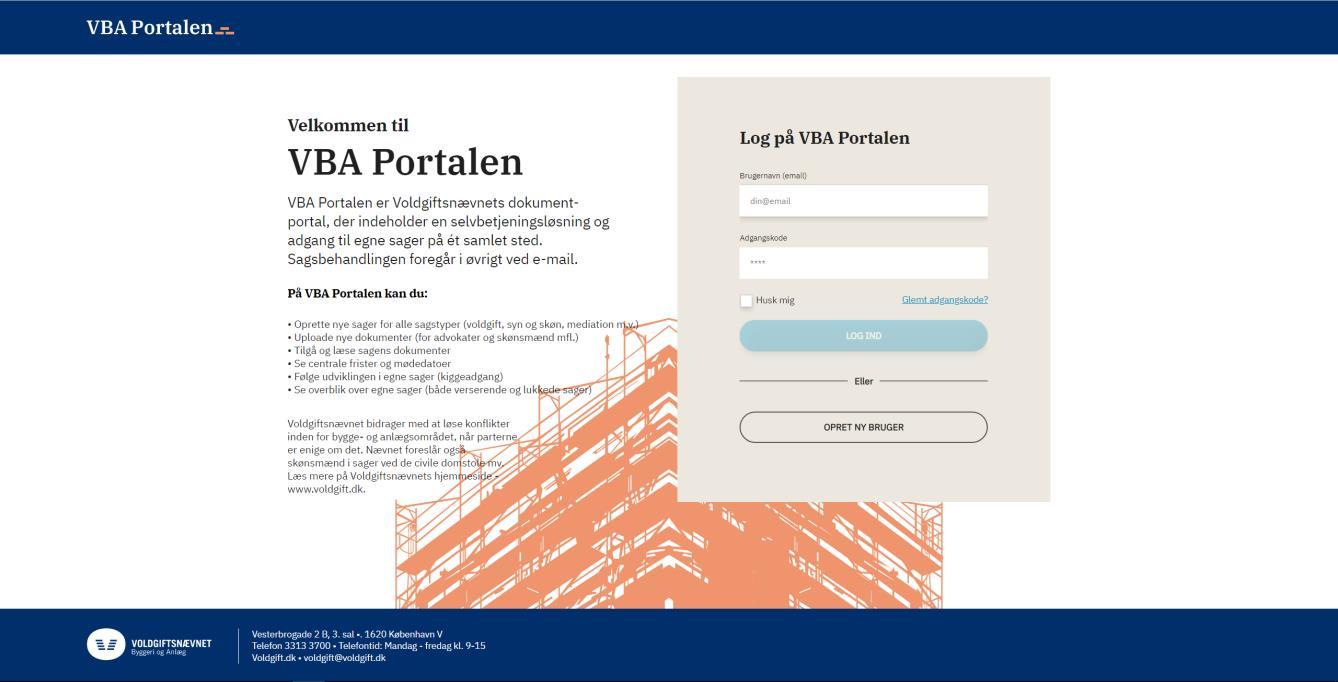 Hvis der er spørgsmål til brug af VBA Portalen kan du kontakte Voldgiftsnævnet