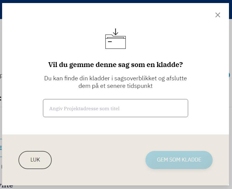 I den boks som dukker op, indtaster du en titel/projektadresse på sagen. Den titel du vælger er foreløbig og kan ændres senere.