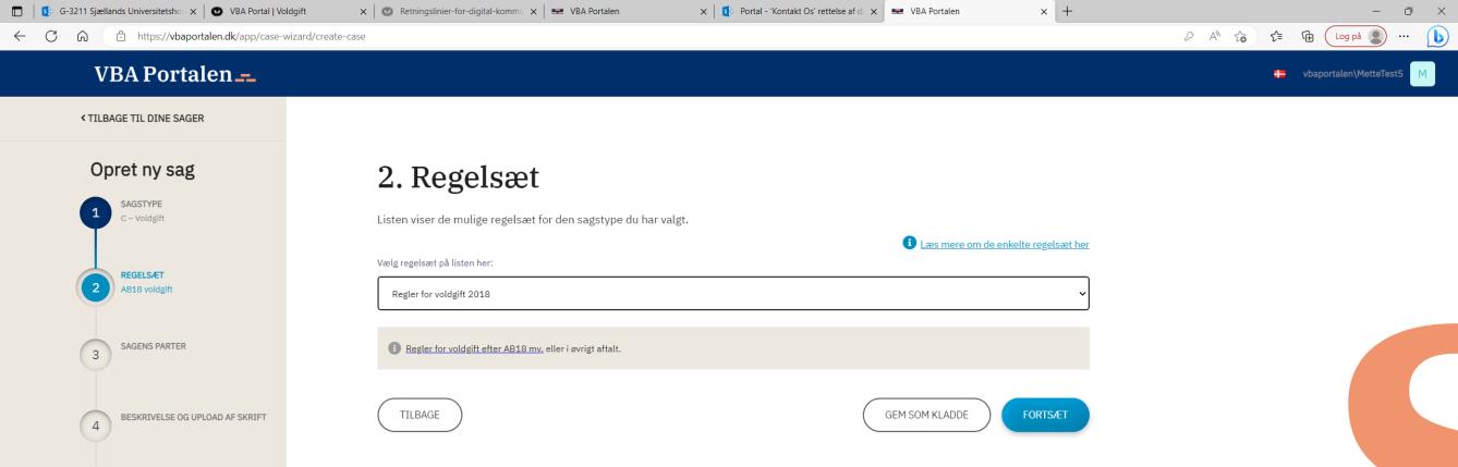 På samme måde vælger du det regelsæt, som sagen skal behandles efter.