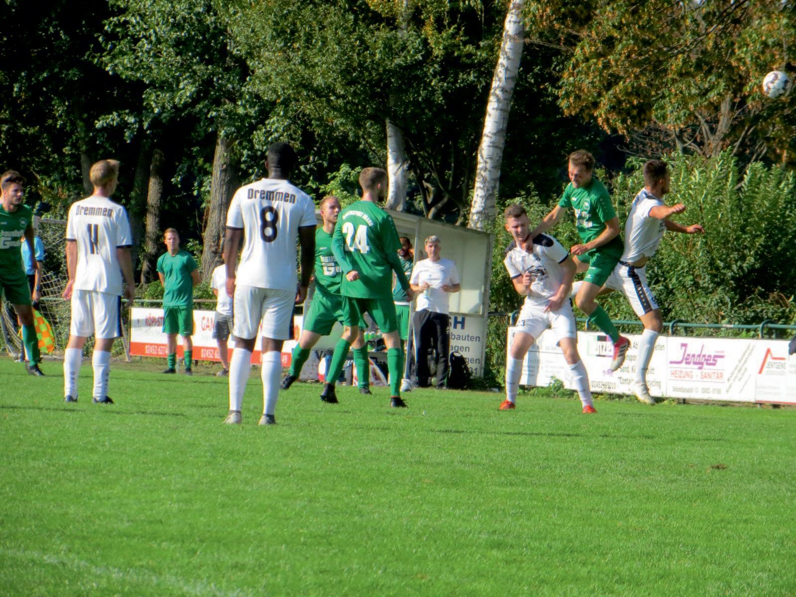 Die Dremmener standen gegen den starken Gast dicht vor dem ersten Saisonsieg. Sie kassierten zwar schon in der dritten Minute das 0:1 durch Malte Bartels-Lenting, ließen sich davon aber nicht aus dem Konzept bringen. Ein Doppelschlag kurz vor der Pause bewirkte, dass Dremmen erstmals in dieser Saison in Führung ging. David Schulz glich aus (40.), und Sascha Schopphoven gelang nachVorarbeit von Sascha Hochgreef das 2:1 (41.). Den kostbarenVorsprung verteidigten die Dremmener, auch wenn Brand offensiv wechselte. Die Räume, die sich daraus ergaben, konnte man aber nicht nutzen. In der zweiten Minute der Nachspielzeit schaffte der eingewechselteTimo Staritz noch den Ausgleich für die Brander.