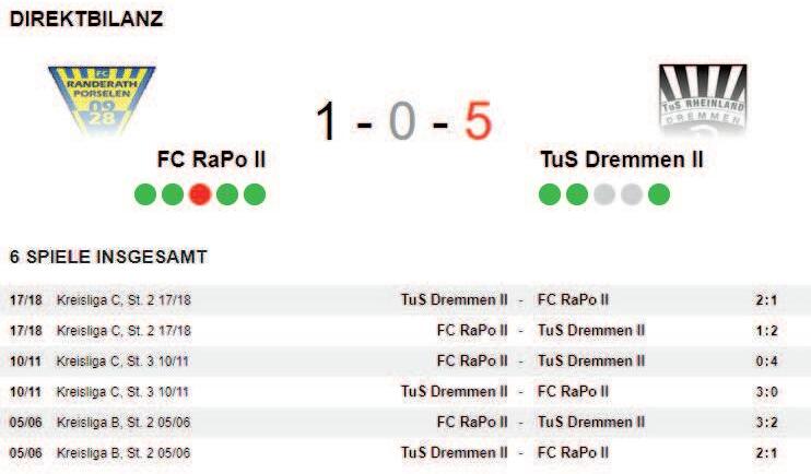 UnserGegnerinderKreisligaCistandiesem WochenendederFCRanderath/PorselenII.Der NachbarvereinhatindenletztenJahreneinen großenSchrittnachvornegemacht. SpielteninderSaison2016/17noch dieErsteundZweitevon Randerath/PorseleninderB-Liga, schafftedieErstedanndenAufstieg unddamitdieRückkehrindieALiga.Dorthatmansichinzwischen etabliertundbrauchtsichumden AbstiegnichtvieleSorgenzu machen.AuchwenndieZweite MannschaftnachdreiJahreninderB-Ligawieder zurückindieC-Ligamusste,istderTrendbeim Nachbarvereinpositiv.DieDrittestehtinderDLigaganzobenundkönntedenAufstiegschaffen. Seitfast20JahrenpendeltdasdieZweitezwischen B-LigaundC-Ligahinundher,wobeiderGroßteil dieserZeitinderC-Ligaverbrachtwurde.Dort spieltemanabermeisteineguteRolleundwar