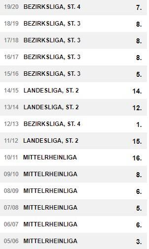 TORAlterNr.SpieleToreEinAusGelbG/RRot NickJansen2633 10 1 FlorianLeipertz311 LarsWolters2423 TamsaAl-Tae19137 5121 AlexanderEngels20169 411 MehmetKaratepe2418 1023 LouisKentzinger1915 84 JehiaMakki275 211 DanielSchmitz4022 11 BjörnSchneider264 834 ThomasWirtz3017 91111 DanyAl-Hallani3 8522 SeyitCeylan316 81111 KarstenGoeres258 1021 ThomasHoffmann3323 77 CharlesKentzinger2112 22 KwijungKim1914 321 ErsanKocyigit2910 ThomasMudrack282 9124 EdibMujovic3921 BurakYaman2319 41111 HussainAlawie299 10102 MarvinBüttner2611 10523 ChristianKoerfer2820 SvenWeber267 121 Spiele Tabellenplatz Punkte Tore Tordifferenz Siege Unentschieden Niederlagen höchsteSiege höchsteNiederl. aktuelleSerie Gesamt Heim Auswärts ABWEHR MITTELFELD ANGRIFF DieSaisonstatistik2019/2020(nachdem12.Spieltag): 10 4 6 7. 11. 2. 18 6 12 22:13 8:5 14:8 +9 +3 +6 6 2 4 5:0gegenConcordiaOidtweiler 0:3gegenDJKFVHaaren 3Spielenichtgewonnen-3Niederlagen 0 0 0 4 2 2