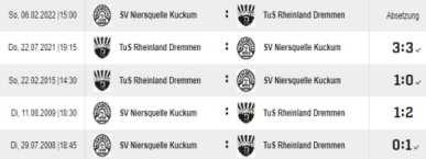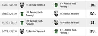 von diesen Strafpunkten konnte man im bisherigen Saisonverlauf erst ein Spiel gewinnen. Dieser Sieg gelang gegen den FC Union Schafhausen III, die im bisherigen Saisonverlauf noch ohne Punkt dastehen. Ohne diese StrafpunktestündedasTeambei drei Punkten und wäre somit nicht weit vom TuS entfernt. Dennoch scheint das Team weit von dem entfernt zu sein, was es in den letzten Jahren ausgezeichnet hat. Mit 44 Gegentoren kassierte man die mit Abstand meisten der Liga. Gegen die zwei Topteams Kempen und Ay-Yildizspor war man komplett überfordert und kassierten in diesen beiden Spielen alleine 21 Gegentore. Rheinland/Übach wird das Spiel in Dremmen nutzenwollenumdenAnschlussherzustellen.