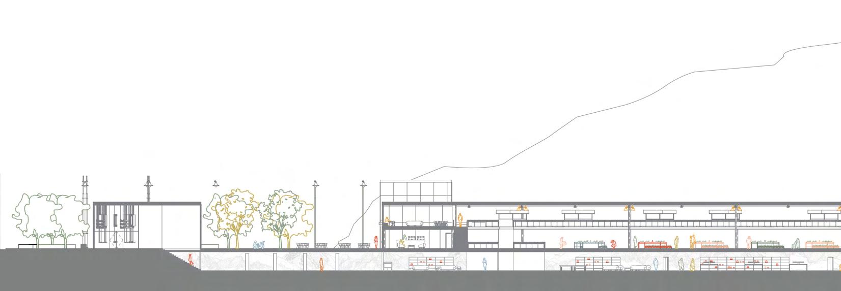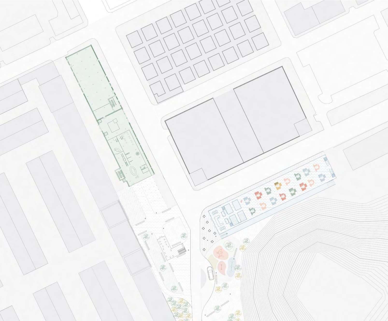 Verso L’Alto is an innovative and sustainable extension of the existing Testaccio market that aims to integrate food sustainability with economic, educational, and social opportunities to revitalize the neighborhood and the area around Monte Testaccio.