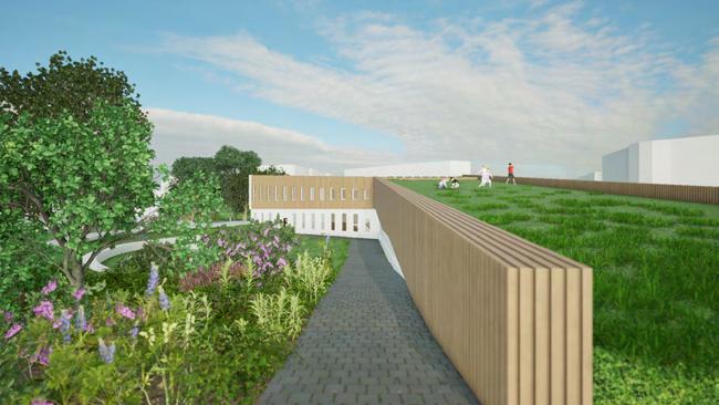 By enhancing the park with a green roof, bioswales, butterfly gardens, and re-densified wooded areas, our design ensures 75% tree coverage while offsetting the recreation center’s footprint. Using native DC plants minimizes disruption, reduces maintenance, and lowers emissions.