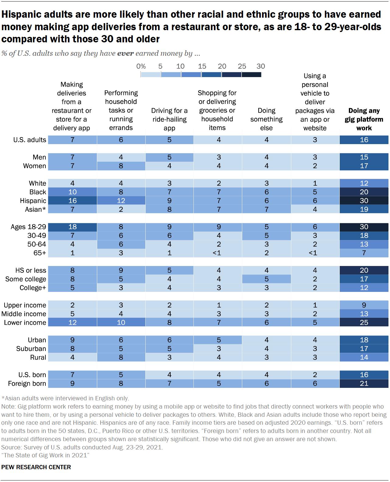 Technology has transformed the gig economy, making it easier to connect customers with private contractors. These gig workers work in anything from food and package delivery, taxi service, dog walking, IT, marketing or bookkeeping services, to lawyers and actors. This may be their “side-hustle” or a growing portion of this population views gig work as their primary source of income.