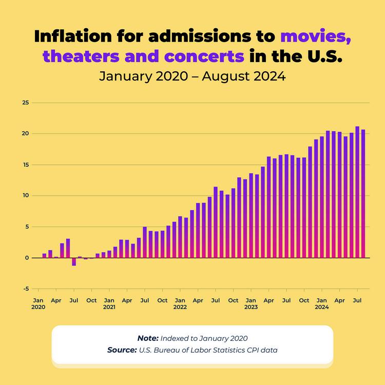 The average cost for a concert ticket has risen by 34.3% over the past five years, increasing 23.33% in 2023 alone.