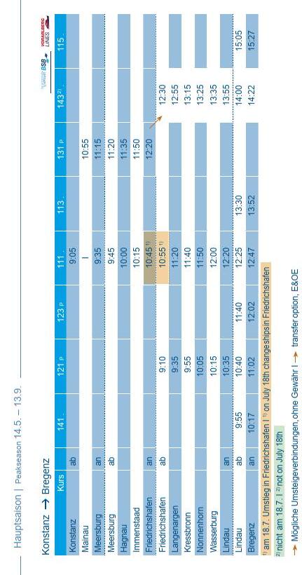 Boarding ab 10.15 Uhr ab Hafen Bregenz 11.00 Uhr an Hafen Bregenz 14.00 Uhr