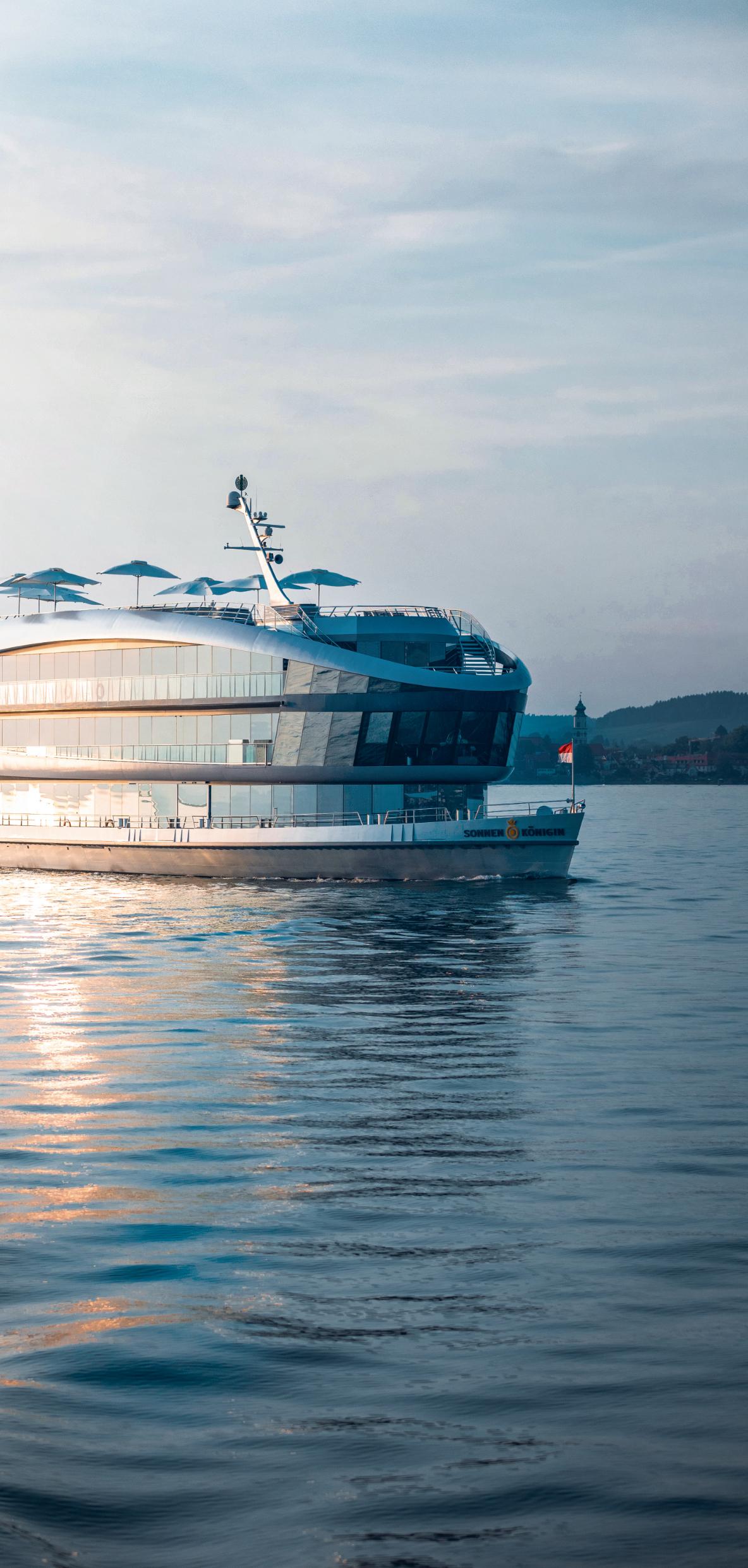 Herzlich willkommen an Bord einer der eindrucksvollsten Eventlocations im Bodenseeraum: der MS Sonnenkönigin. Hier verschmelzen majestätische Atmosphäre, erlesenes Ambiente und kulinarische Exzellenz zu einem unvergesslichen Erlebnis. Die Kulisse ist atemberaubend – auf drei Ebenen bietet das Schiff Raum für bis zu 1.000 Gäste. Mobiliar,Ausstattung und Dekoration wurden mit Liebe zum Detail ausgewählt und versprühen Stil und Eleganz in jedem Winkel.