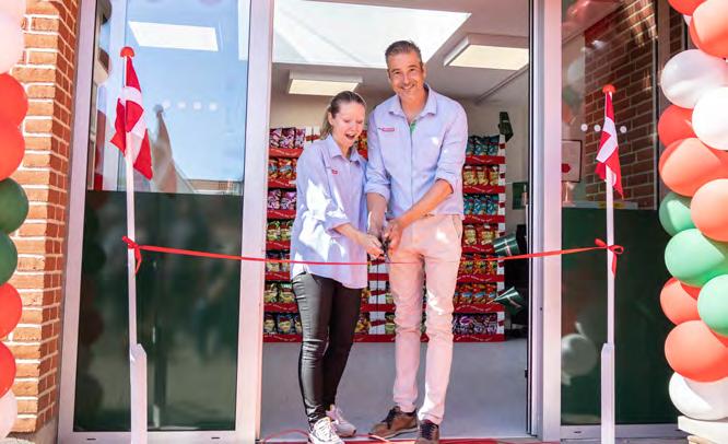 Derefter stod dem på officiel åbning, hvor Tanja og Jens klippede den røde snor til stor begejstring for de mange fremmødte gadbjergborgere, der klappede det nye