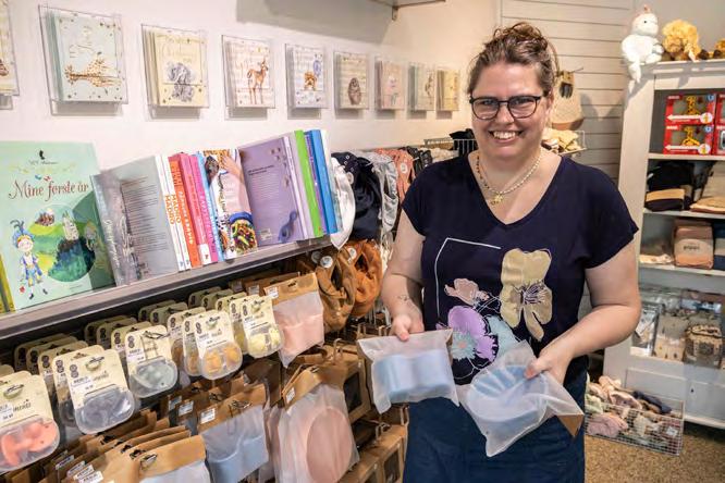 Heidi Nørbo Rasmussen har fået en rigtig fin start med byens nye bog- og legetøjsbutik. Og hun har løbende udvidet sortimentet i afdelingen med babytøj. Foto: Jim Hoff