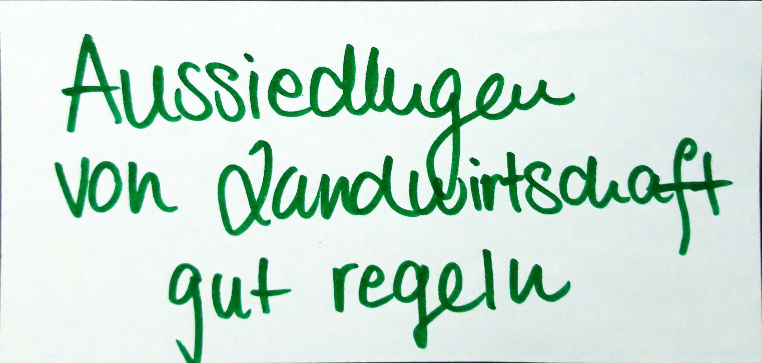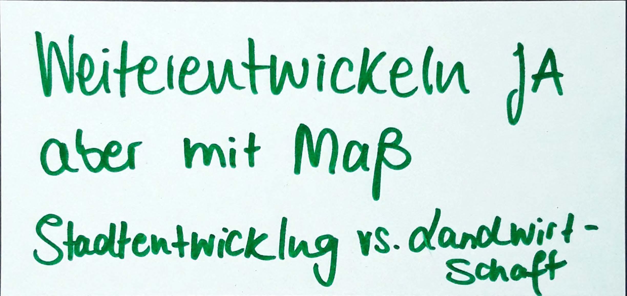 In der Kategorie Flächenentwicklung sind Haltungen und Forderungen zum Umgang mit neu bebauten und gewidmeten Flächen enthalten. Ein maßvoller bzw. gezielter Umgang wird hierbei gefordert.