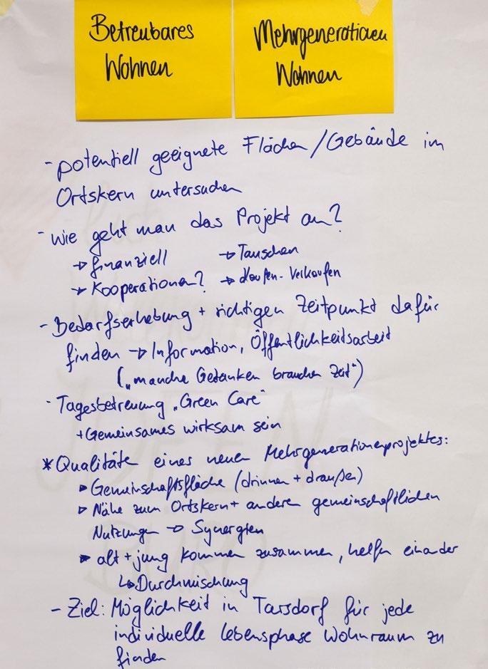 Als übergeordnetes Ziel wurde abschließend formuliert, dass in Tarsdorf für jede individuelle Lebensphase geeigneter Wohnraum verfügbar sein soll.