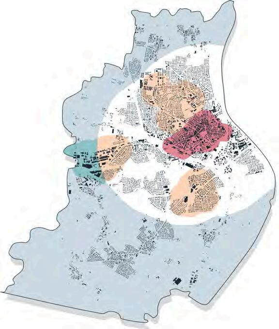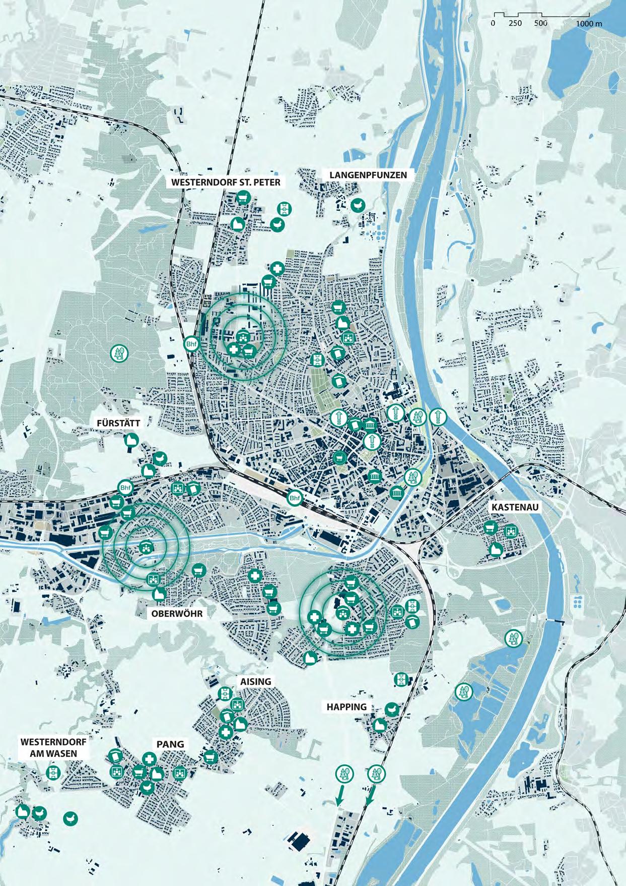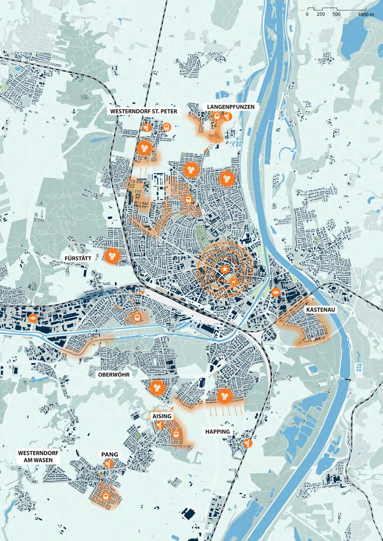 Das Zentrum der Stadt umfasst die historische Altstadt mitsamt den neuzeitlichen Stadterweiterungen der stark verdichteten Kernstadt. Hier befinden sich wichtige Infrastrukturen, Versorgungsund Einkaufsstandorte, sowie Kultur- und Geschäftszentren.