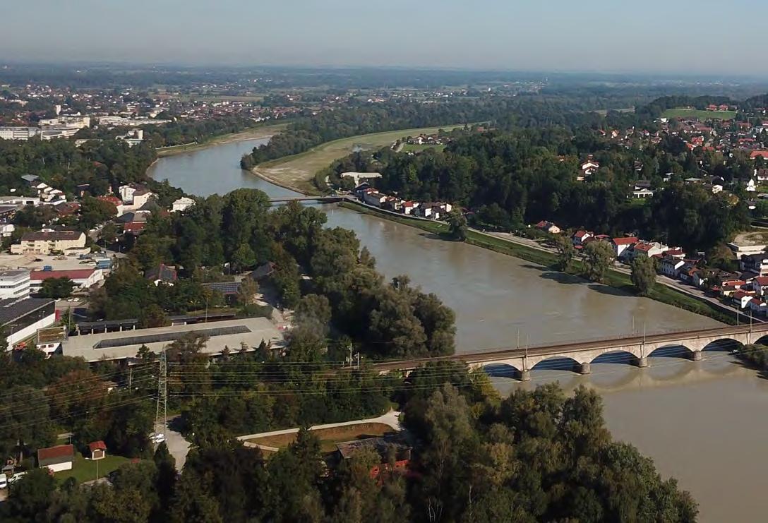Flüsse und Bäche Rosenheim liegt am Zusammenfluss von Mangfall und Inn. Hierdurch spielt das Wasser in und für die Stadt eine wichtige Rolle. Der Inn stellt zudem nach Osten hin die klare Stadtgrenze dar. Der Inn selbst ist hierdurch nicht Teil des Stadtgebiets, sondern gehört zur Nachbargemeinde Stephanskirchen. Durch Begradigungen, Regulierungen und Eingriffe in den Wasserlauf hat sich die Gesamtfläche der Flusslandschaften reduziert. Im nördlichen Stadtbereich befindet sich eine ca. drei Kilometer lange Flutmulde. Die Staustufe Rosenheim südöstlich der Kernstadt liegt auf dem Gebiet der Gemeinde Rohrdorf. Das zugehörige Kraftwerk kann mit einer Leistung von 35 MW einen Großteil der Umgebung mit Energie versorgen. Die Mangfall mündet am Innspitz in den Inn. Parallel zur Mangfall verläuft der gleichnamige Mangfallkanal. Der Kanal teilt sich im weiteren Verlauf in den EWerk-Kanal, sowie die Innenstadtbäche Mühlbach und Hammerbach. Letzterer verläuft ab dem Innspitz parallel zum Inn. Im Bereich zwischen westlicher Stadtgrenze und Wiedereinmündung des Mangfallkanals ist der Fluss renaturiert worden. Zusätzlich sind vermehrt Hochwasserschutzmaßnahmen projektiert. Als Gebirgsfluss besteht bei der Mangfall die Gefahr von plötzlichen Pegelanstiegen.