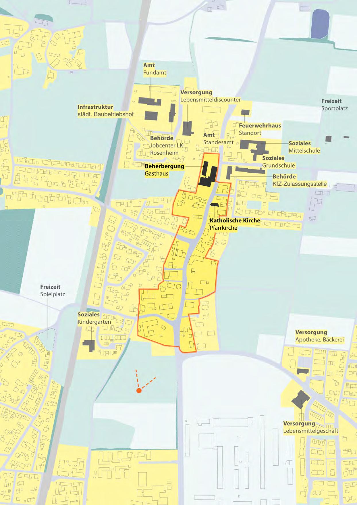 Die ländlichen Bereiche im Stadtgebiet Rosenheim bestehen bis heute im Wesentlichen aus den Hofstrukturen des Altortes. Ergänzungen durch Ein- und Mehrfamilienhäusern überwiegen im Gegensatz zu den ländlichen Zentren nicht. In der Versorgung sind sie auf die übrigen Stadtbereiche angewiesen, gleichzeitig besitzen sie einen hohen eigenständigen Identitätscharakter.