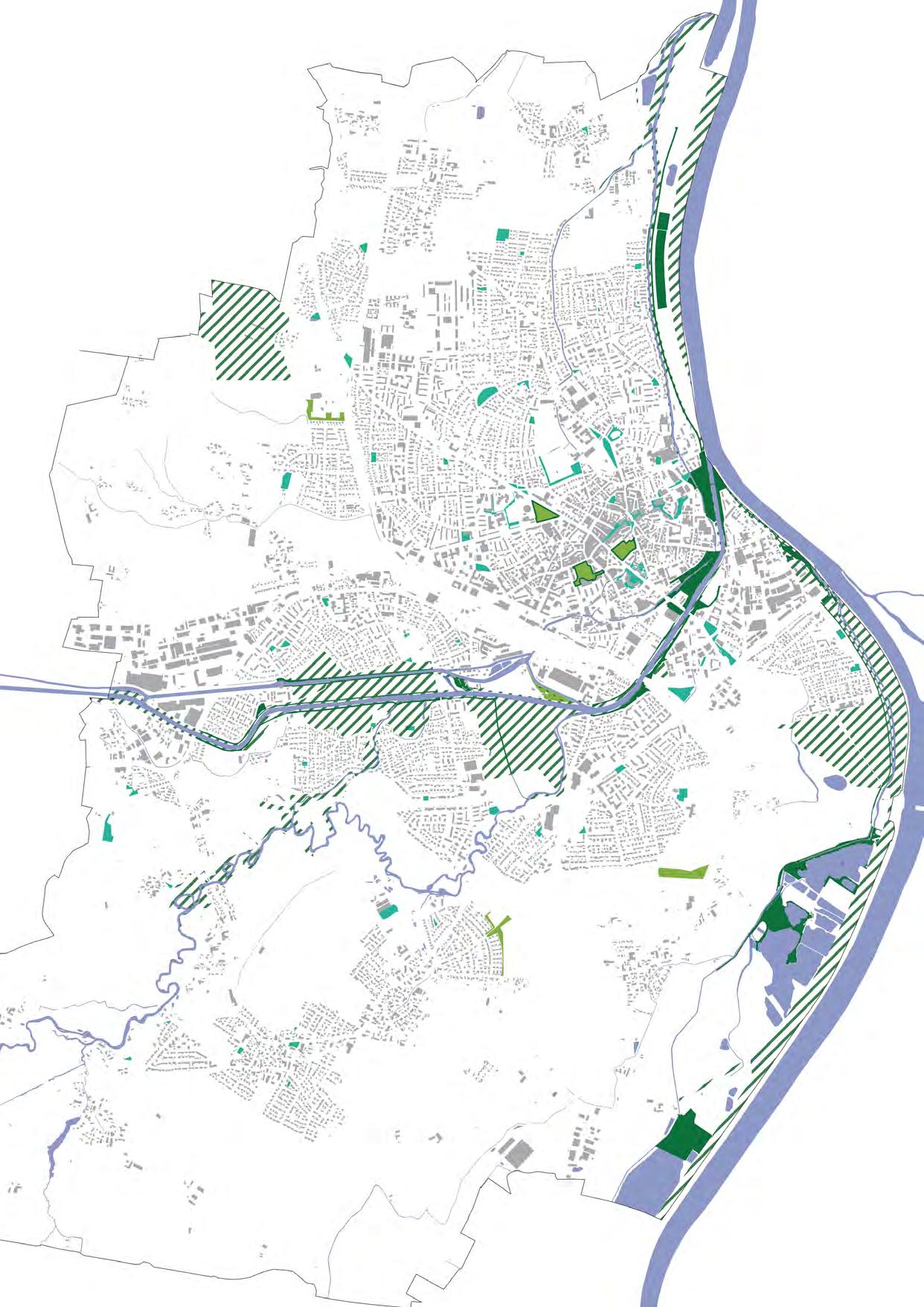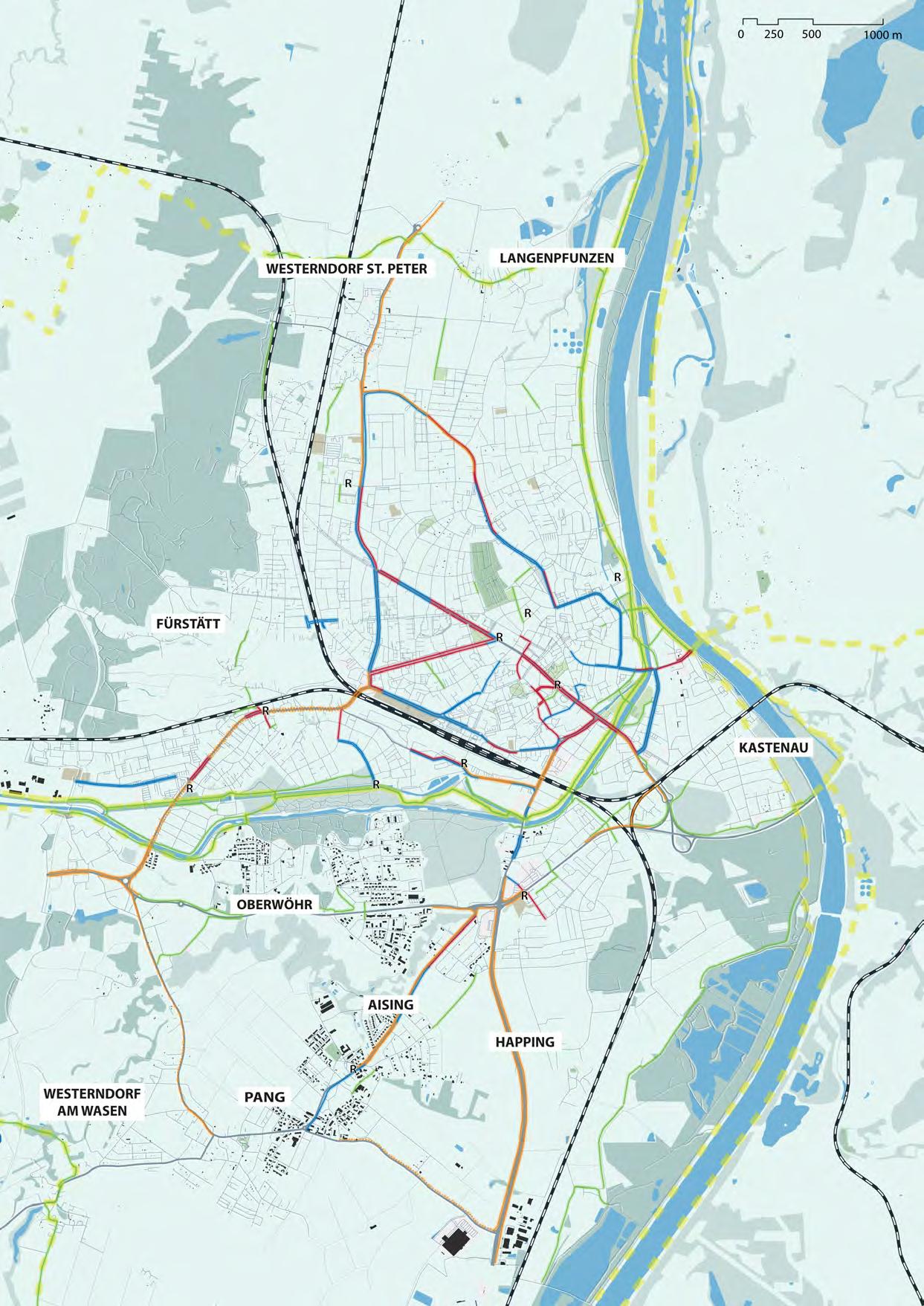 Bei der weiteren Entwicklung ist die Sicherung von Grünzügen, Biotopverbundachsen und das Berücksichtigen der Frischund Kaltluftschneisen wichtig, zugleich soll das Regenwasser im Sinne eines klimawirksamen Schwammstadtprinzips effizient genutzt werden. Das Wasser- und Hochwassermanagement ist an die sich verändernden Dynamiken anzupassen.