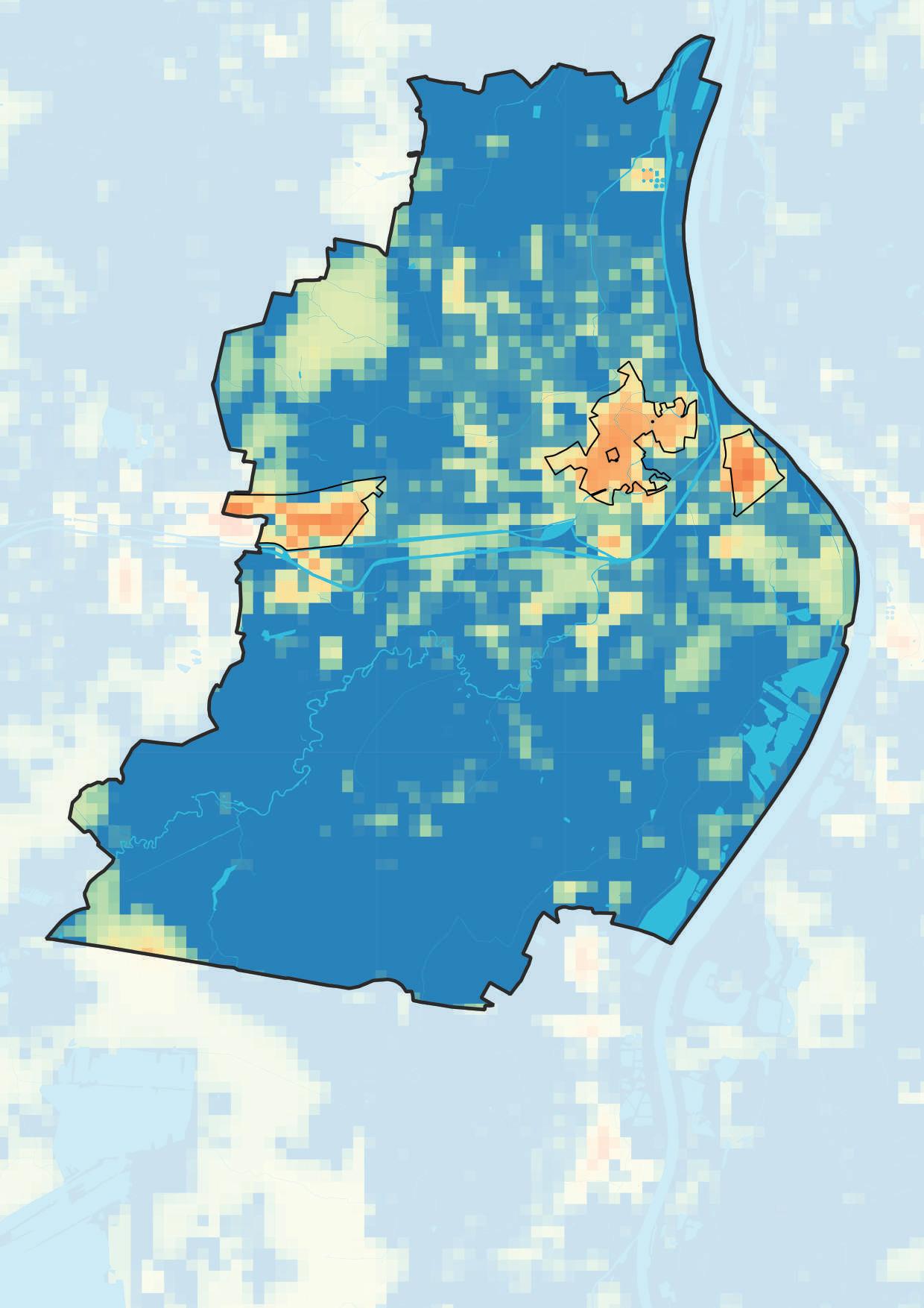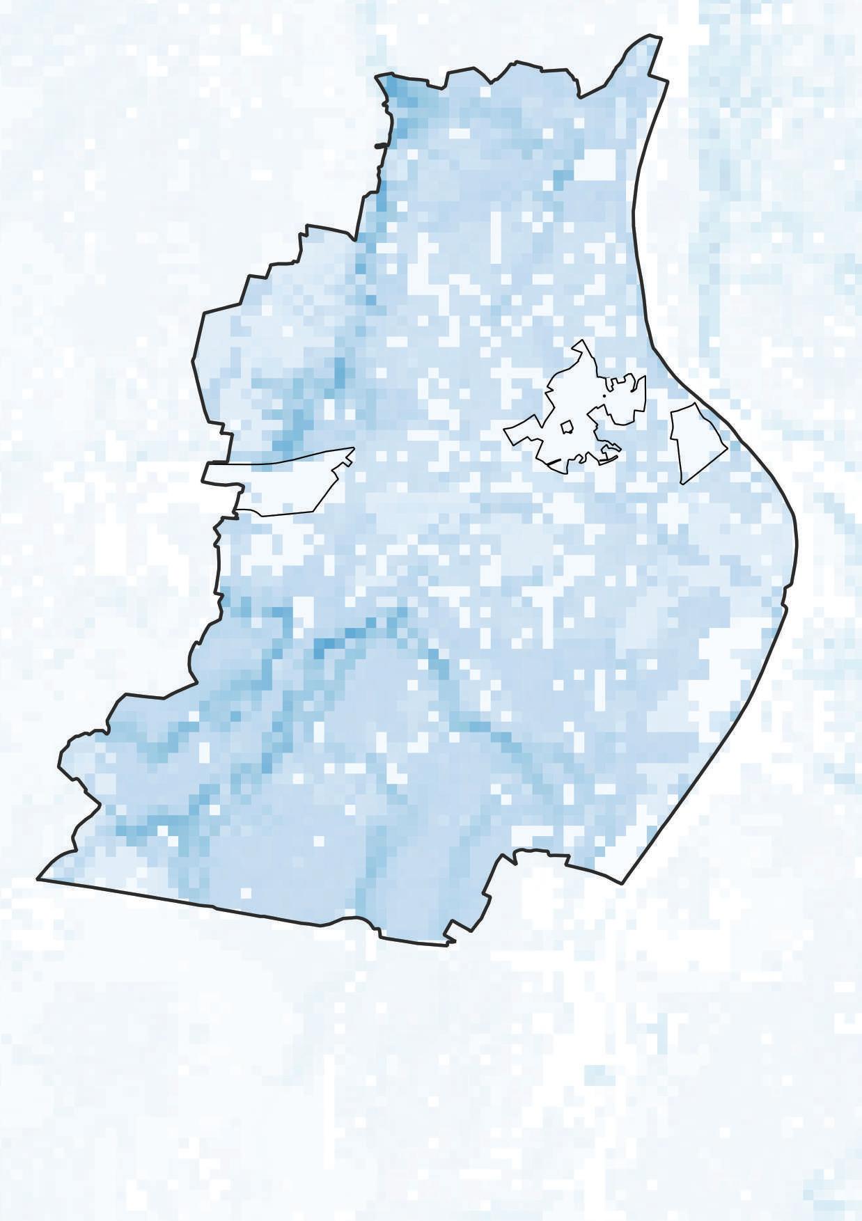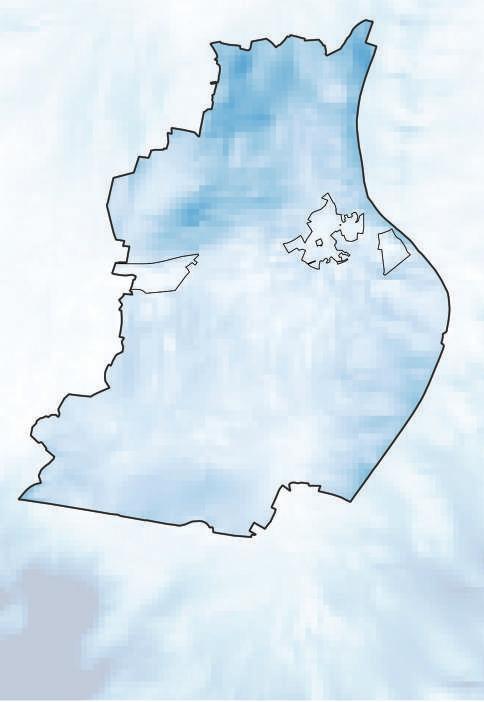 Symbolhafte Darstellung der Kaltluftentstehungsgebiete auf regionaler Ebene