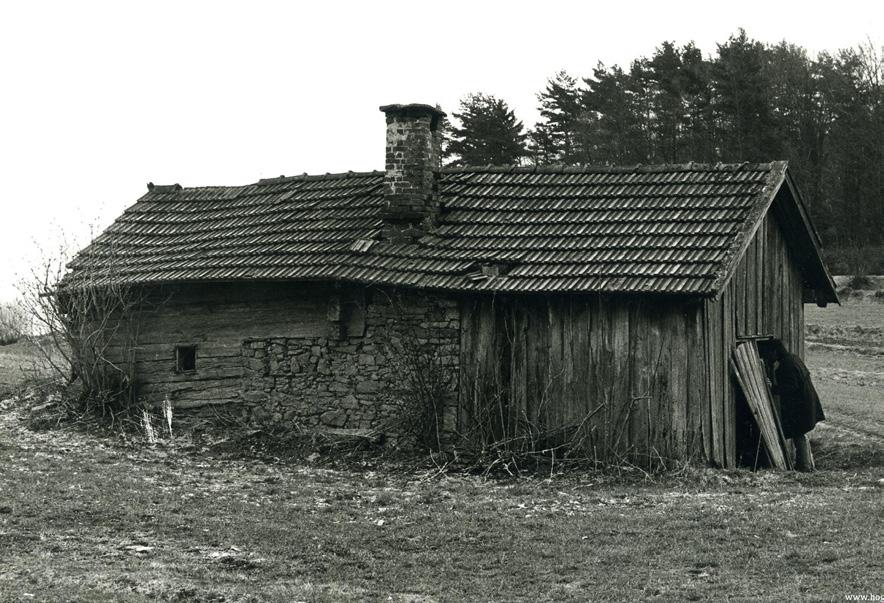 Im Gegensatz dazu mündete der Flachs- und Hanfanbau sehr wohl zur Ausbildung eines bestimmten Gebäudetyps, der offenbar weit verbreitet war. Dabei handelte es sich um so genannte ‚Brechäuser‘, in denen die Halme des Flachs‘ getrocknet wurden um in einem zweiten Arbeitsschritt daraus die Fasern zu gewinnen (‚brechen‘). Brechhäuser waren weit verbreitet, denn die Herstellung von Textilien war bis in das frühe 20. Jh. eine wichtige Einkommensquelle in der Region (Mayer 2013, 6). Die Brechäuser lagen typischerweise etwas außerhalb der Siedlungen (siehe das Beispiel Flanitz, Abb. 4.4.2), da von ihnen Brandgefahr ausging. Die Brechhäuser verfügten über einen wiederkehrenden dreigeteilten Aufbau: Dem Dörrraum, wo der Flachs getrocknet wurde, dem Heizherd mit Schornstein zur Wärmeerzeugung und dem ‚Brechelraum‘, in dem die Fasern mechanisch ausgelöst wurden (https://www. hogn.de/2022/04/113/2-kultur-im-bayerischen-wald/1-ausmwoid/hofleben-anno-dazumal-11-granitstall-doerrboden-undbrechhaus/155659). Diese drei Räume bildeten sich in dem länglichen Bau auch nach außen ab (vgl. Abb. 4.4.3). Auffällig war dabei der Schornstein, der auf einem solch bescheidenen Bauwerk einen deutlichen Hinweis auf eine Sonderfunktion gab.