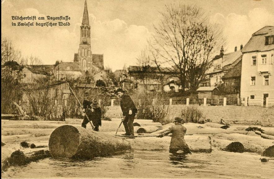 Abb. 4.3.1: Trift wahrscheinlich kurz vor dem Sägewerk Weikl in Zwiesel, um 1900.