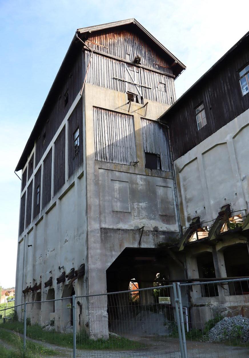 oberhalb von Viechtach. Erst im Jahr 1993 wurde der Abbau eingestellt und das Steinbruchareal in das Naturschutzgebiet ‚Großer Pfahl‘ aufgenommen. Weitere Quarzschottersteinbrüche gibt es auch südlich entlang des ‚Pfahls‘, doch sind diese, obwohl größer, landschaftlich nicht so auffällig. Das Brechwerk ‚Sporer Quetsch‘ ist in jedem Fall ein herausragendes Industriedenkmal und in seiner Gesamtheit gut überkommen. Die anzutreffende Architektur ist jedoch wenig repräsentativ für den Landkreis, denn große Industriebauten des frühen 20. Jahrhunderts sind eher eine Seltenheit. Es handelt sich um einen mehrgeschossig turmartig aufragenden Skelettbau. Das Tragskelett ist aus Stahlbeton hergestellt, die Gefache sind mit Holz geschlossen. Dass es sich bei dieser Konstruktion im Landkreis um keinen Einzelfall handelt, ist am Kernbau der Papierfabrik Pfleiderer in Teisnach zu erkennen (Nr. 019). Der dortige Bau zeigt große Ähnlichkeit; die Gefache dort sind jedoch ausgemauert und verputzt (vgl. Abb. 4.6.2).