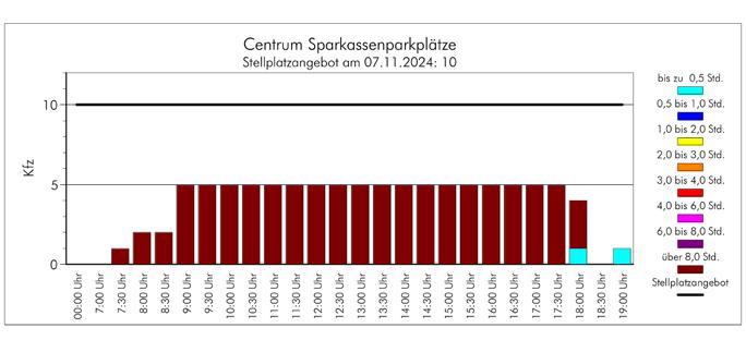 Abb.99 Auslastung Centrum Sparkassenparkplätze mit Belegungsdauer, Quelle: PSLV 71