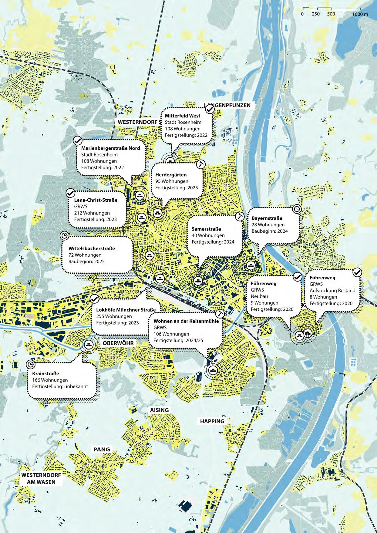 DerWohnraumbedarfinsbesondereanbe‐zahlbaremWohnraumistinRosenheim hoch.EinigeWohnungsbauprojekteinEnt‐wicklungoderFertigstellungsollendiesen Bedarfzumindestteilweisedecken. AlskompakteMittelstadtbietetRosen‐heimeinhohesPotenzialfürdieNutzung undVerlagerungderVerkehrswegeweg vomMIV.SpeziellinderRadwegeinfra‐strukturzeigensichjedochnochdeutliche Mängel,auchdieUnfallquoteimRad-und Fußverkehristbisweilennochsehrhoch.