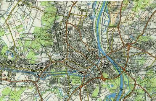 IneinerKurzübersichtwirdder StadtraumRosenheimhinsichtlich seinerstädtebaulichenStrukturen, denvorhandenen Landschaftselementen,sowieder Gewässerstrukturaufgeschlüsselt.