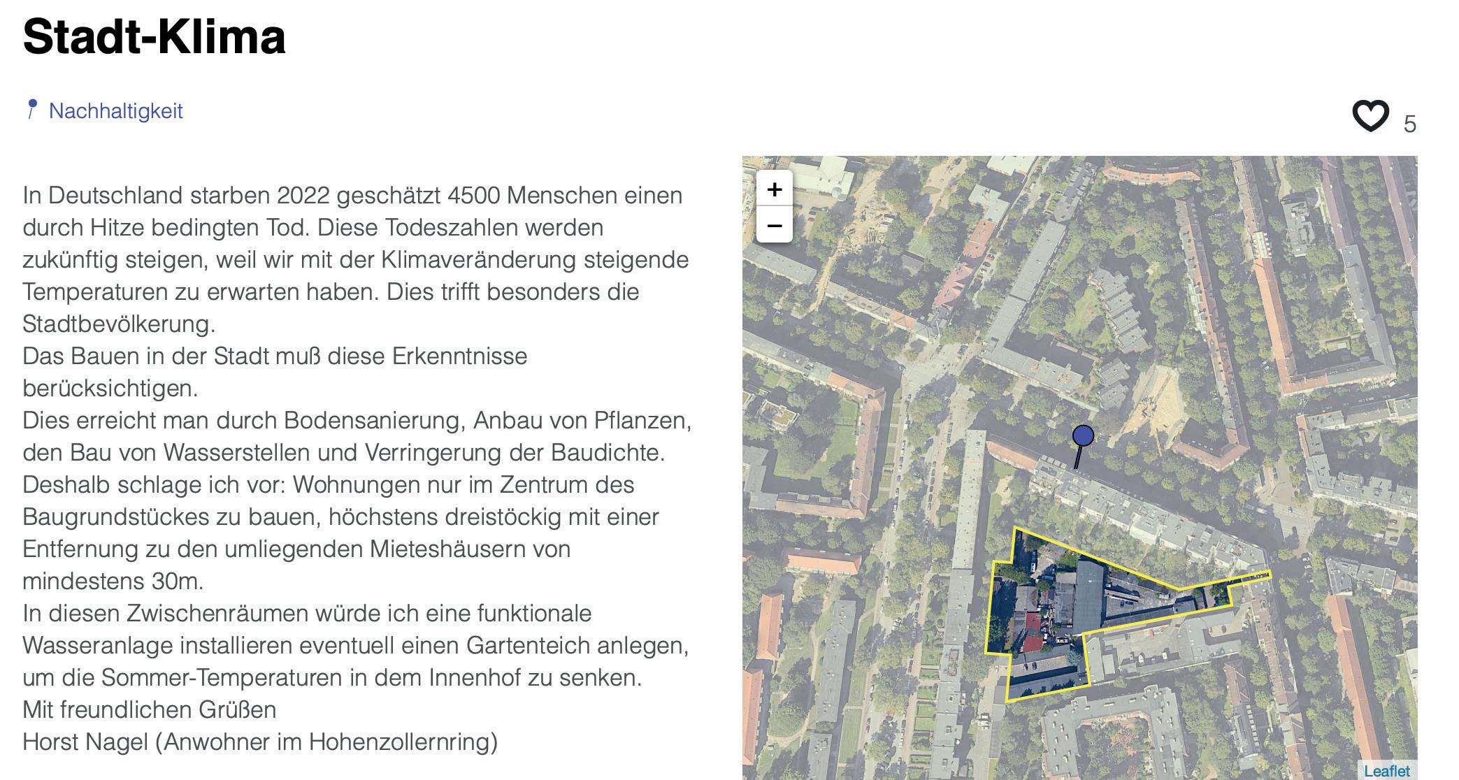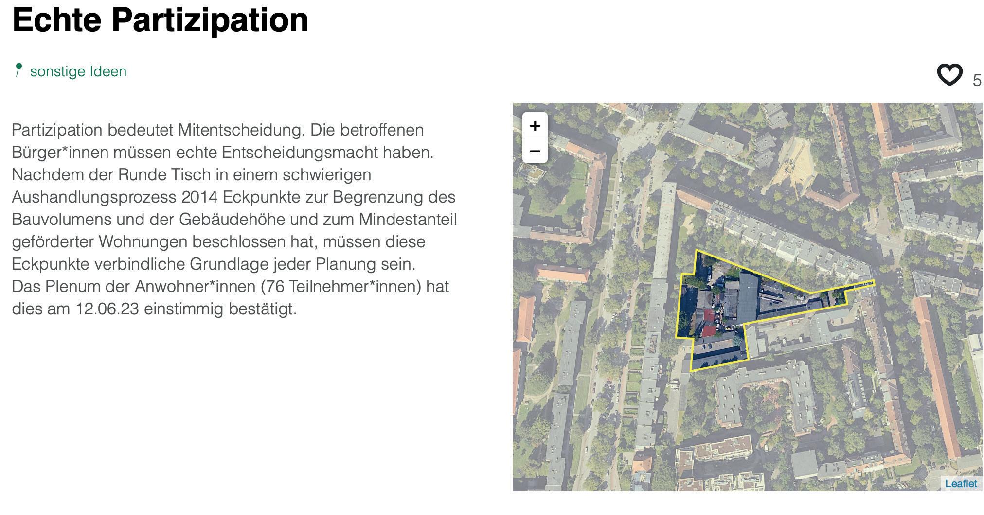 Wichtig wäre, dass der Projektentwickler, die Stadt und die Anwohner:innen diese Balance zusammen entwickeln. Vorbildhaft und neu wäre hierbei, dass ein solcher Dialog auch konsequent zu einer Lösung geführt wird!