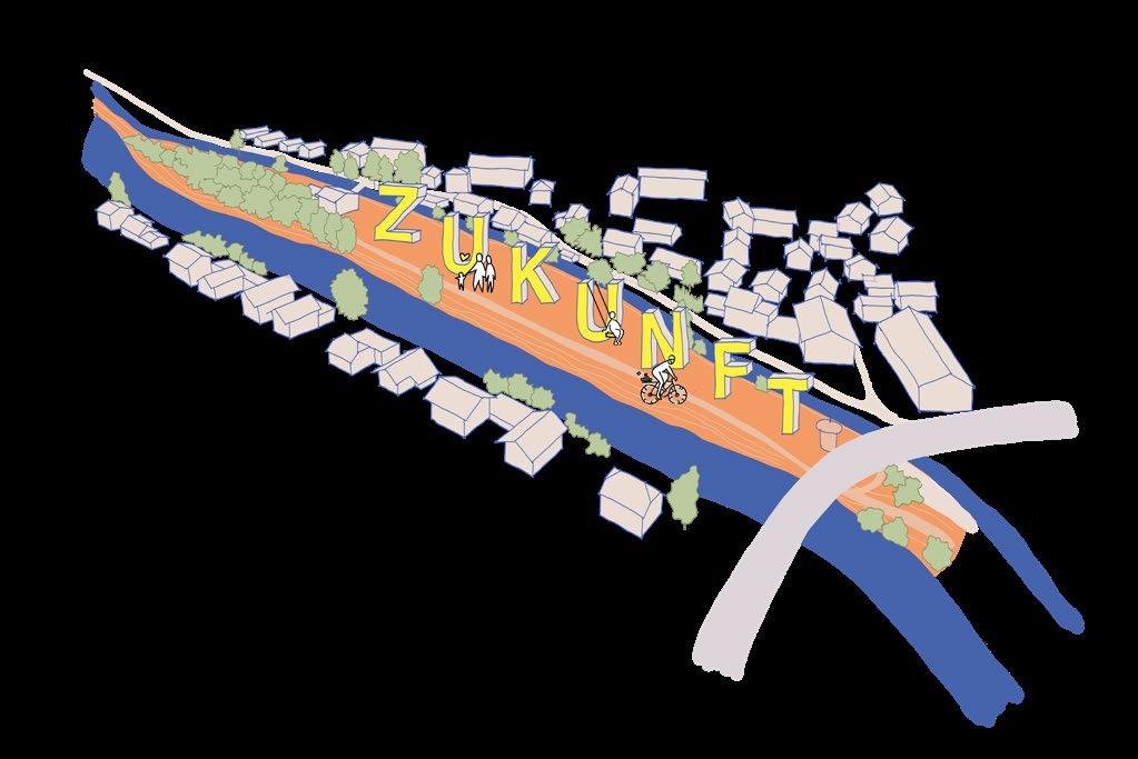Für alle Nachbar:innen, mit Blick auf die Insel, soll durch die weitere Entwicklung der Ausblick aufgewertet werden. Eine neue qualitätvolle Bebauung soll eine Bereicherung im Vergleich zu den Bestehenden baufälligen Hallen sein, die teilweise auch die Sicht blockieren.