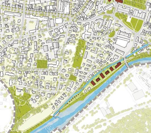 • Entwicklung eines hochwertigen Wohnstandortes in einer landschaftlich attraktiven und zentralen Lage im direkten fußläufigen Nahbereich der Innenstadt.