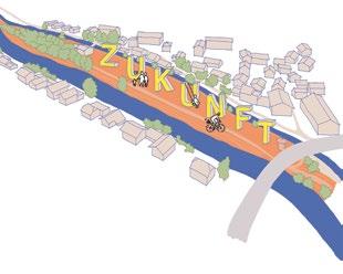 Die Wege entlang der Traun und des Mühlbaches für Radfahrer:innen und Fußgänger:innen müssen als öffentliche Wege erhalten werden. Neben der Nutzung als Spazier- und Verbindungswege bieten sie Zugang, bzw. Blick zum Wasser. Es soll außerdem fußläufige Querverbindungen zwischen den Wegen geben.
