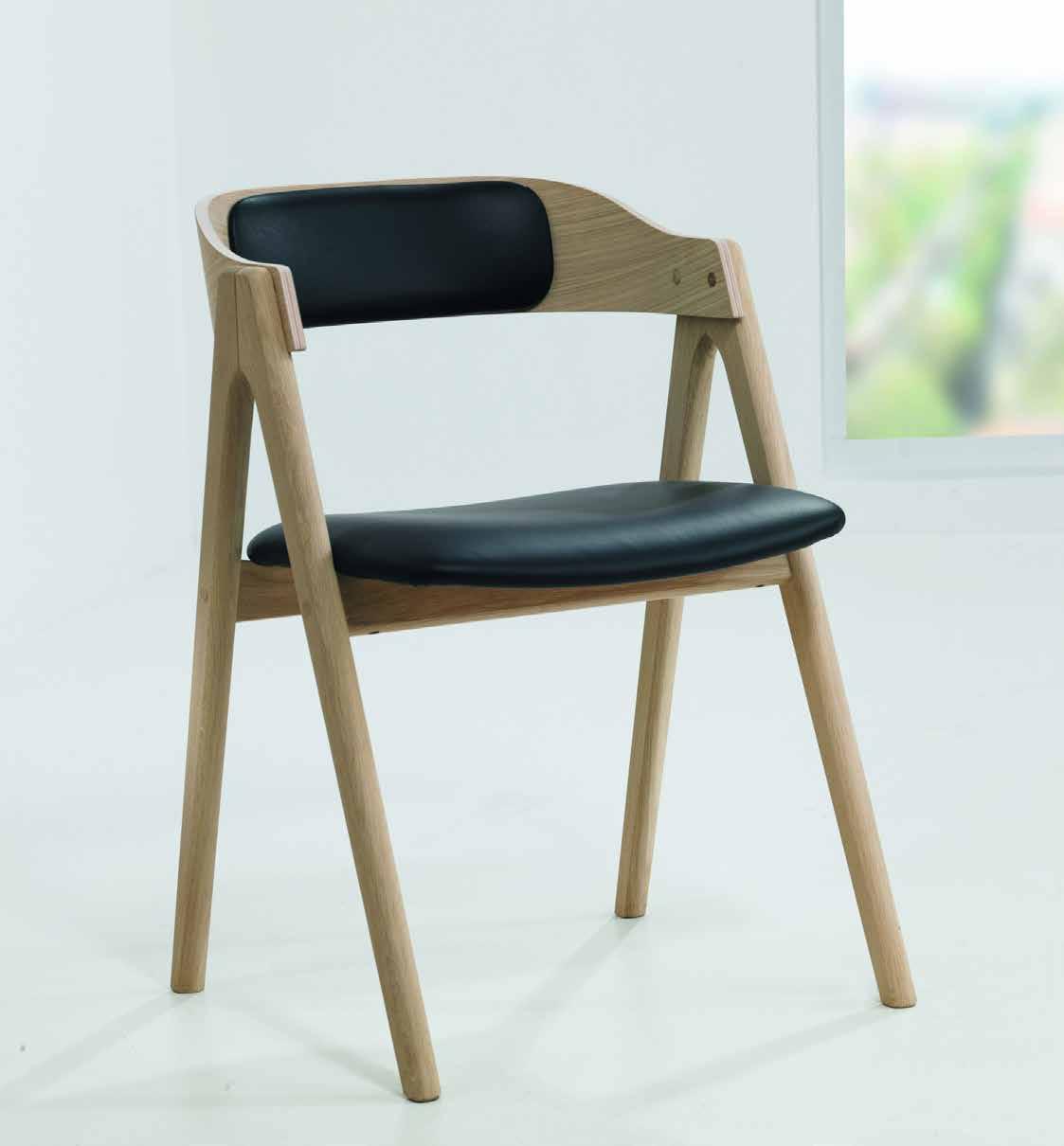 METTE STÓLUR Eik mattlakk, svart leðursetur og rygg