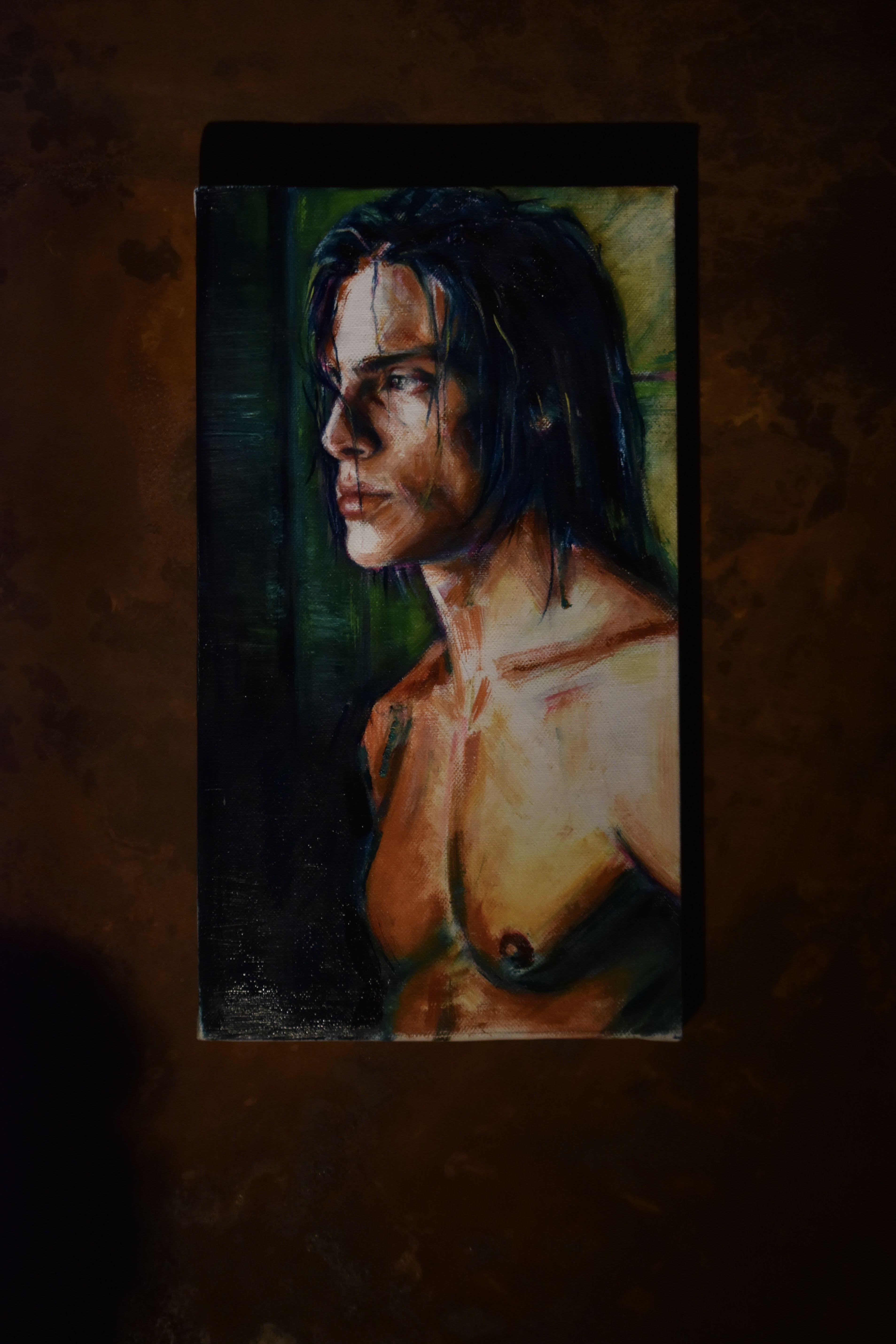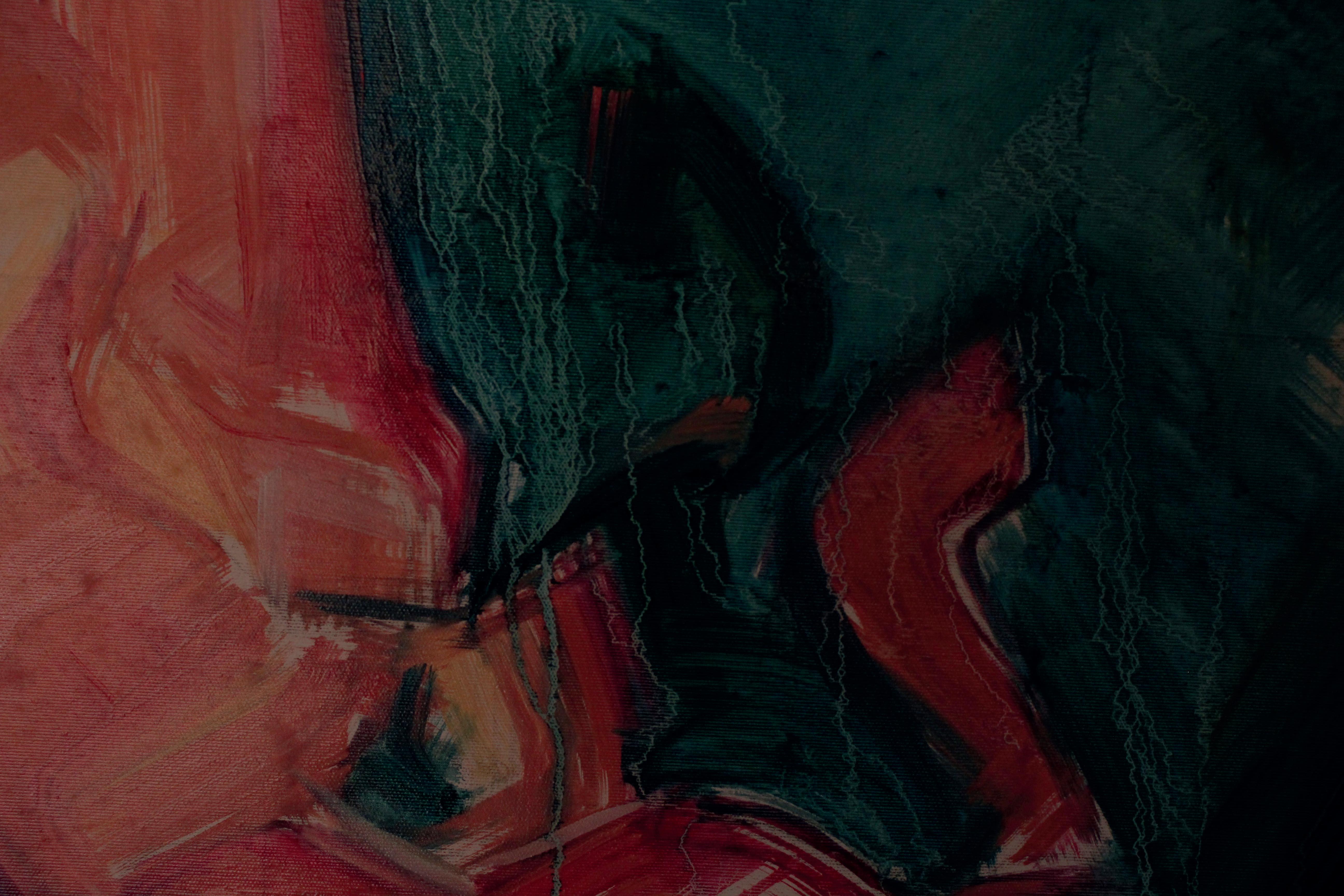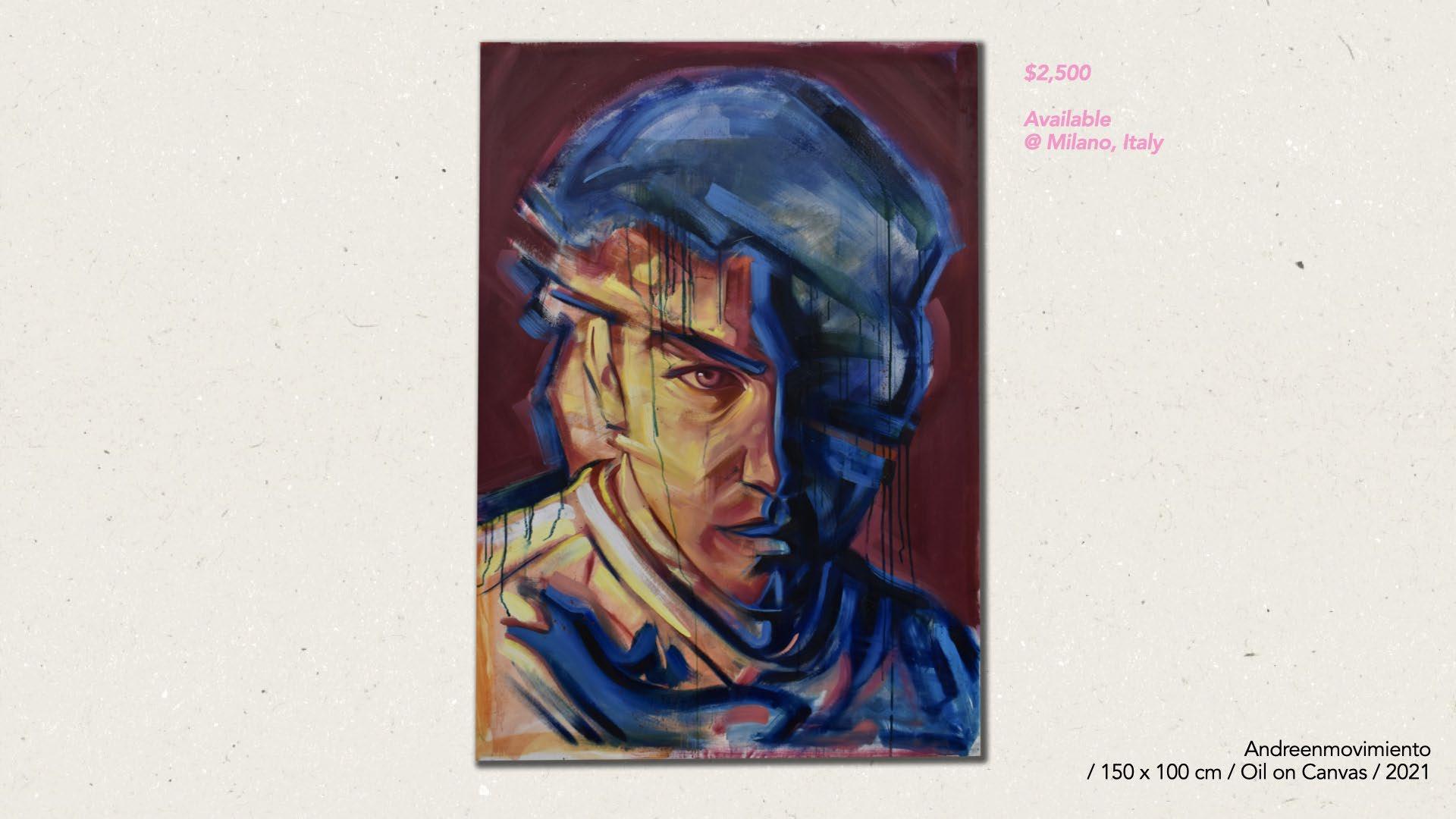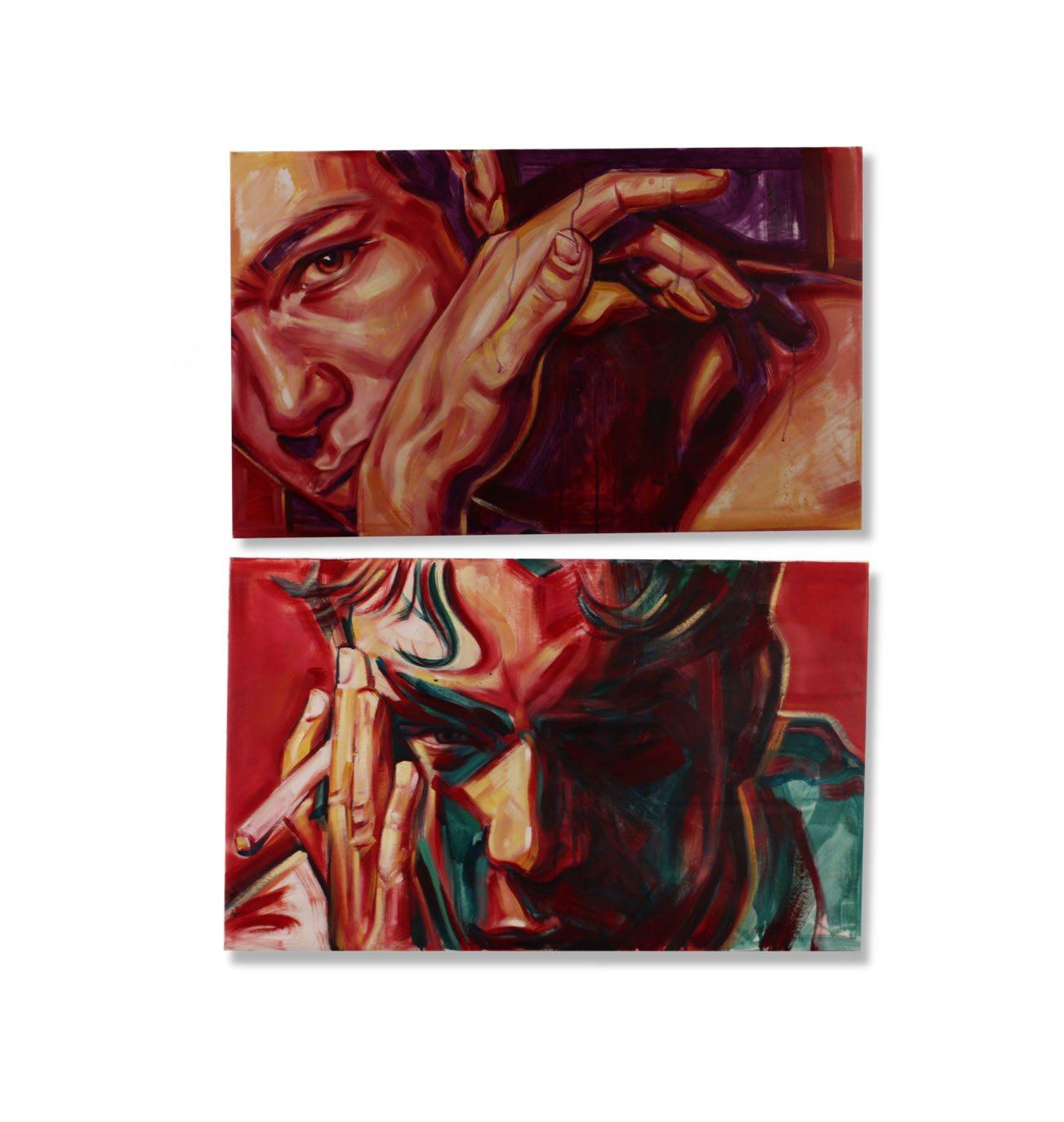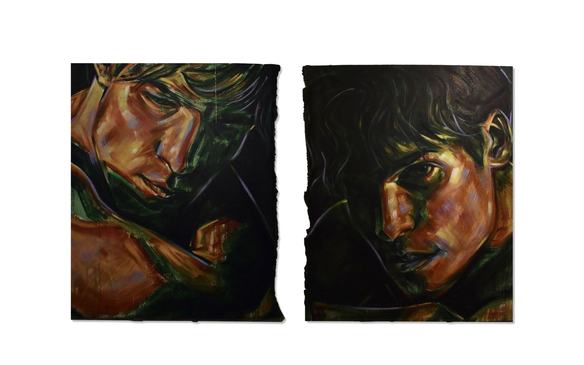 Through his musework, the reproduction of their-self is done with the purpose of becoming real, natural. Capturing them - himself of the other - in moments revealing intimate personal truths. Rather it be through chromatic language, or the rips and burns in the canvas, the subject is rebelliously dissected and reinterpreted by various meands. For Javi, the energy created between artist and muse, between gazer and the gazed, is nevessary. An attempt at complete harmony with the self, through the other.