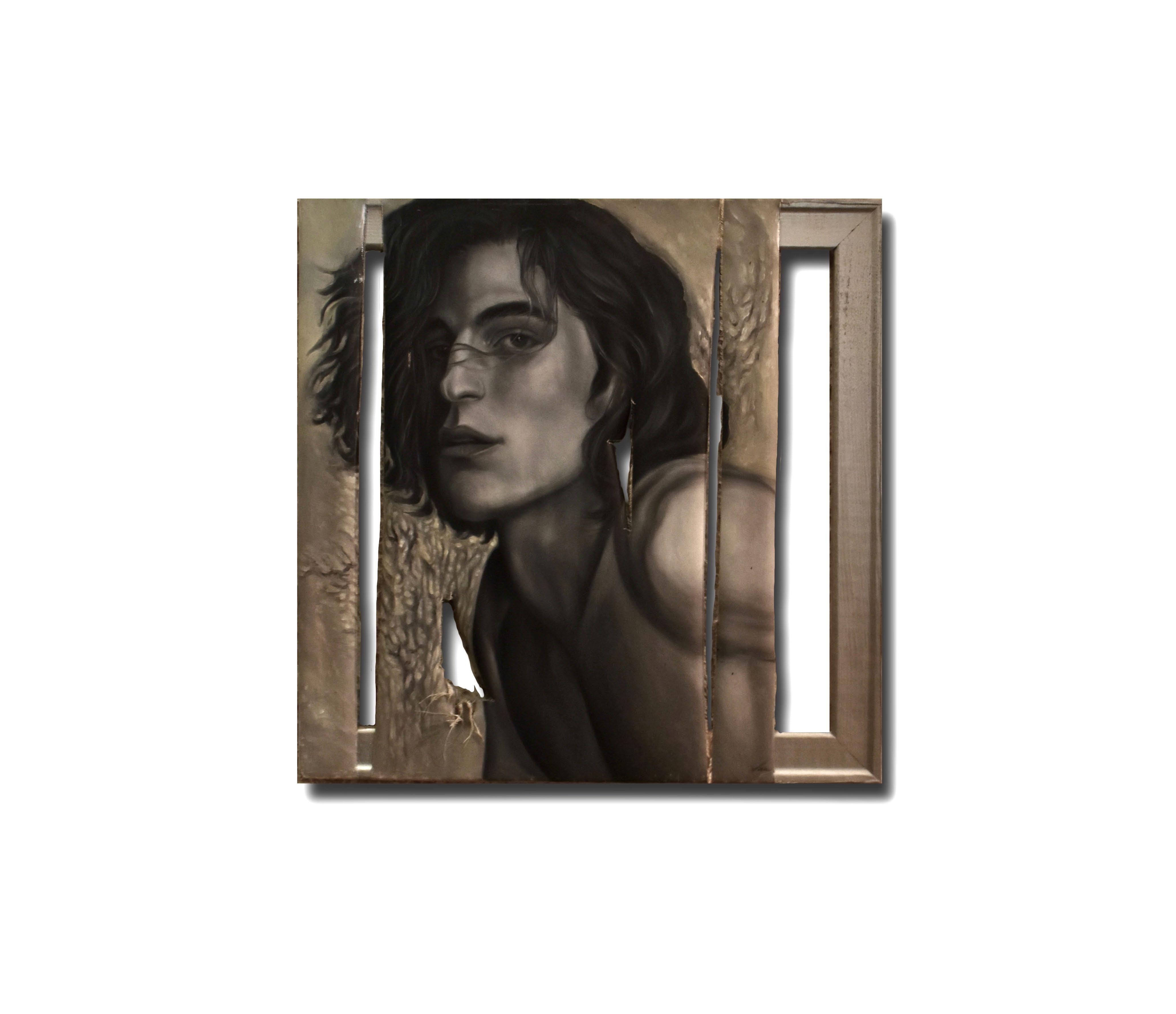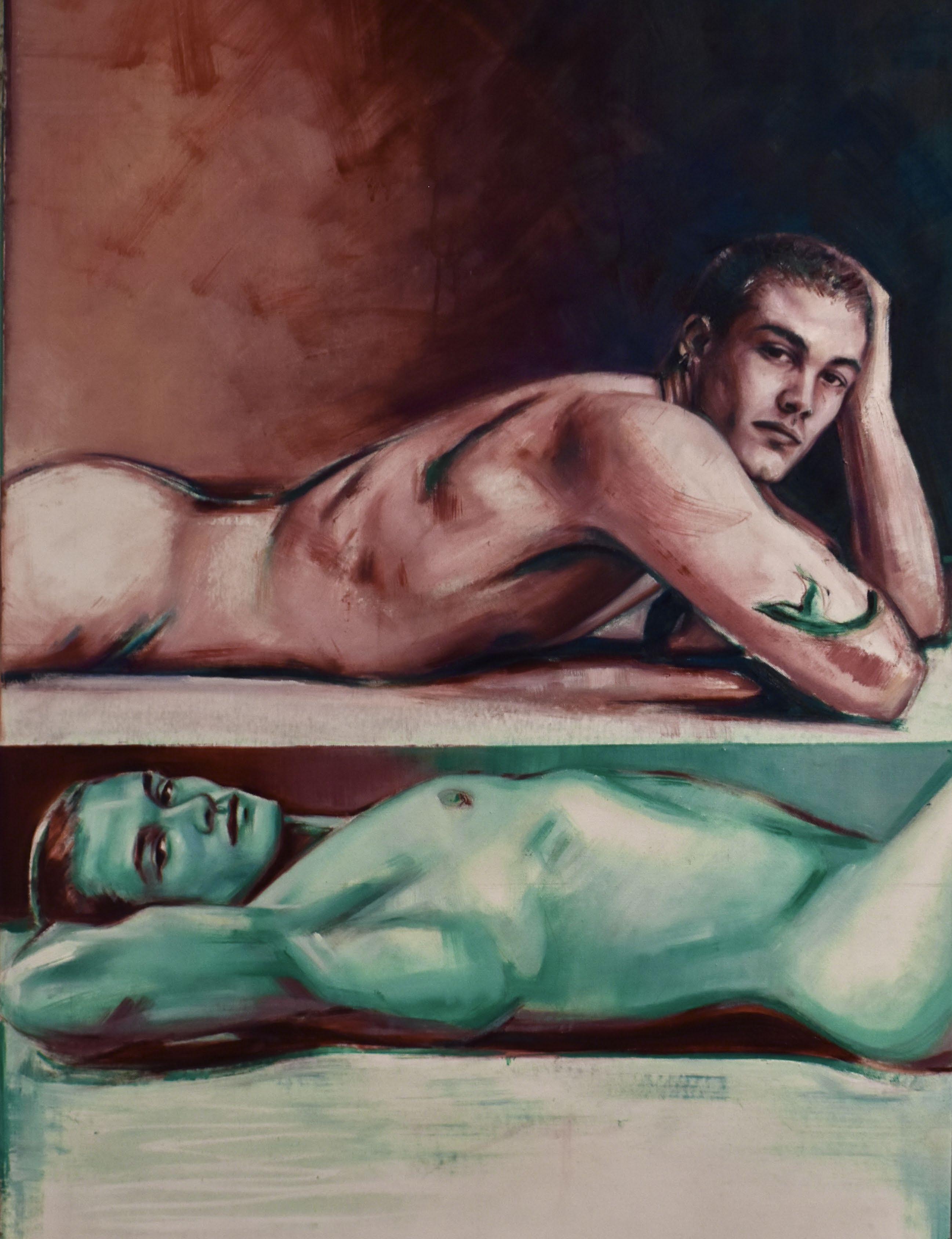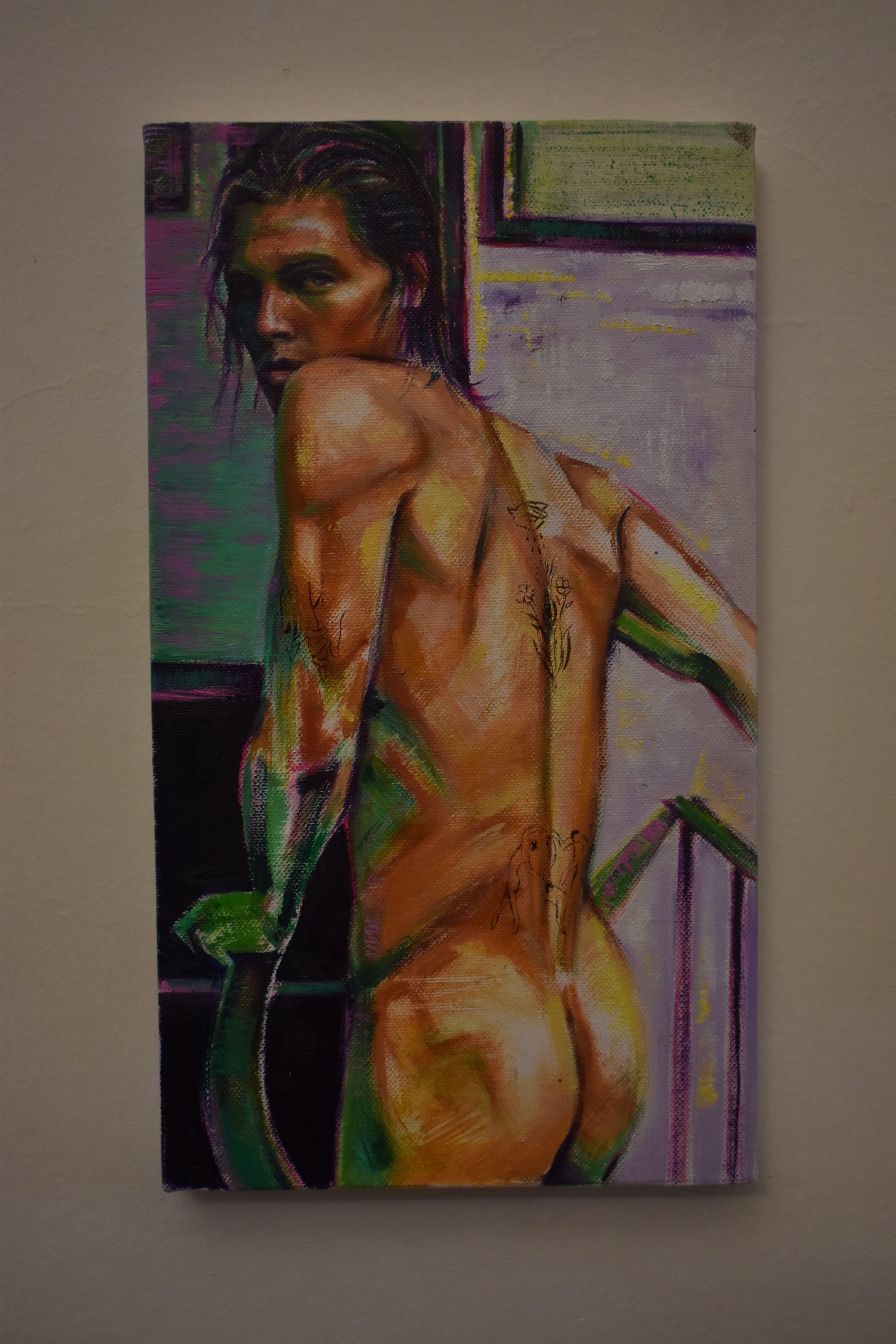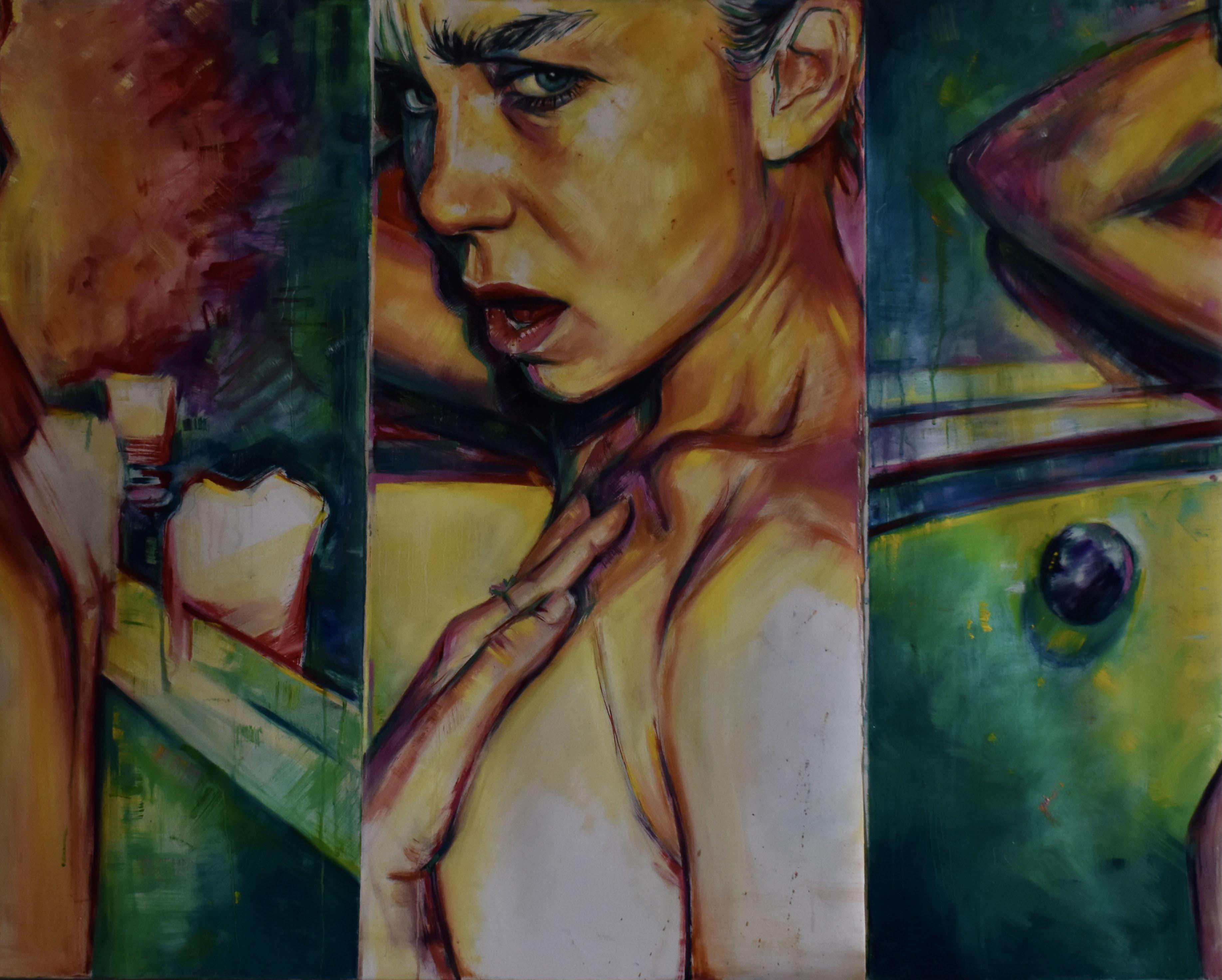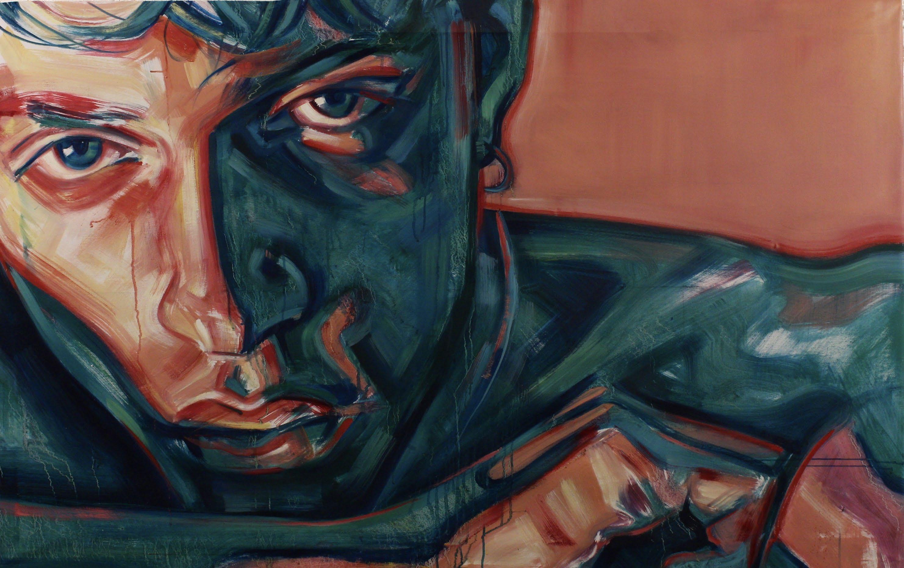 Through his musework, the reproduction of their-self is done with the purpose of becoming real, natural. Capturing them - himself of the other - in moments revealing intimate personal truths. Rather it be through chromatic language, or the rips and burns in the canvas, the subject is rebelliously dissected and reinterpreted by various meands. For Javi, the energy created between artist and muse, between gazer and the gazed, is nevessary. An attempt at complete harmony with the self, through the other.