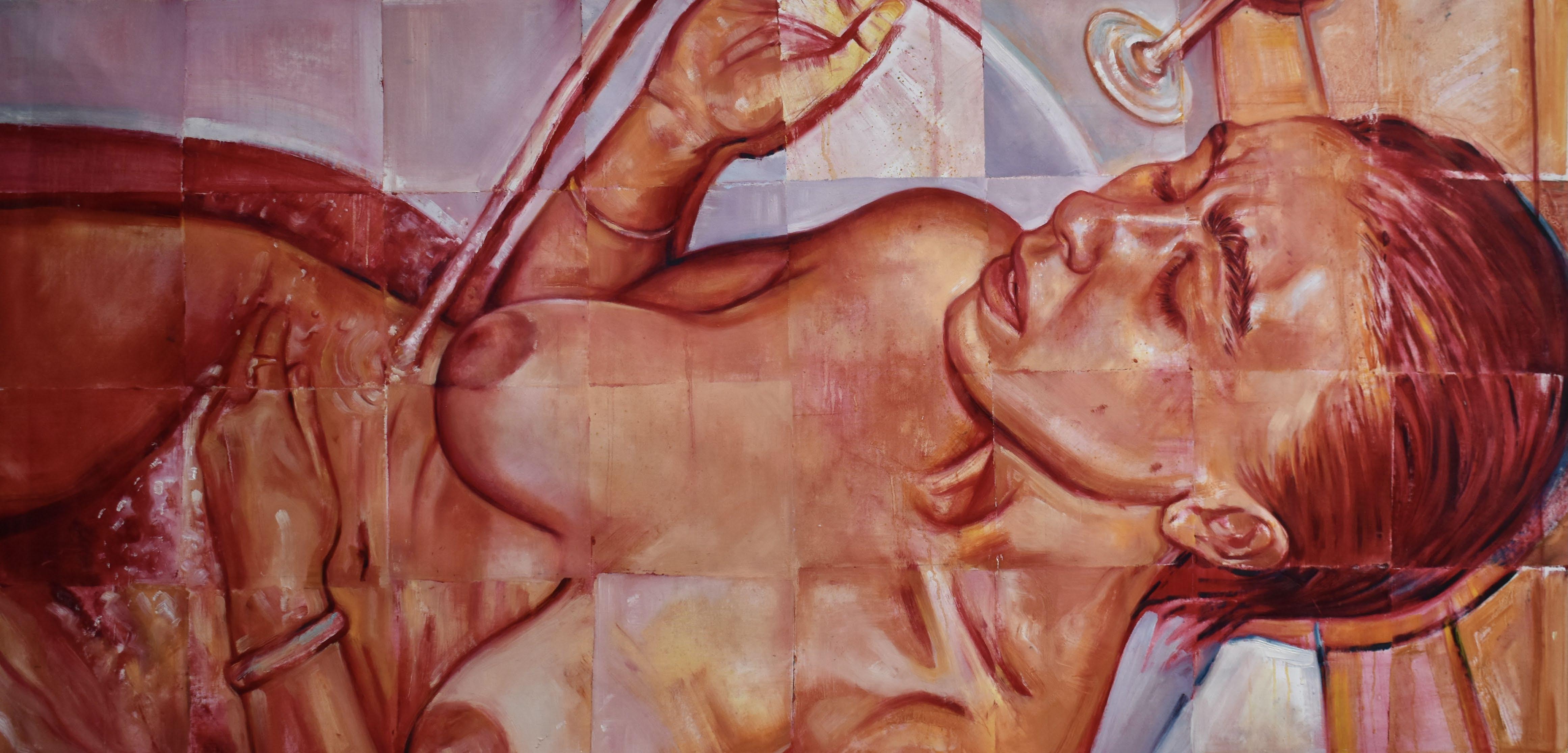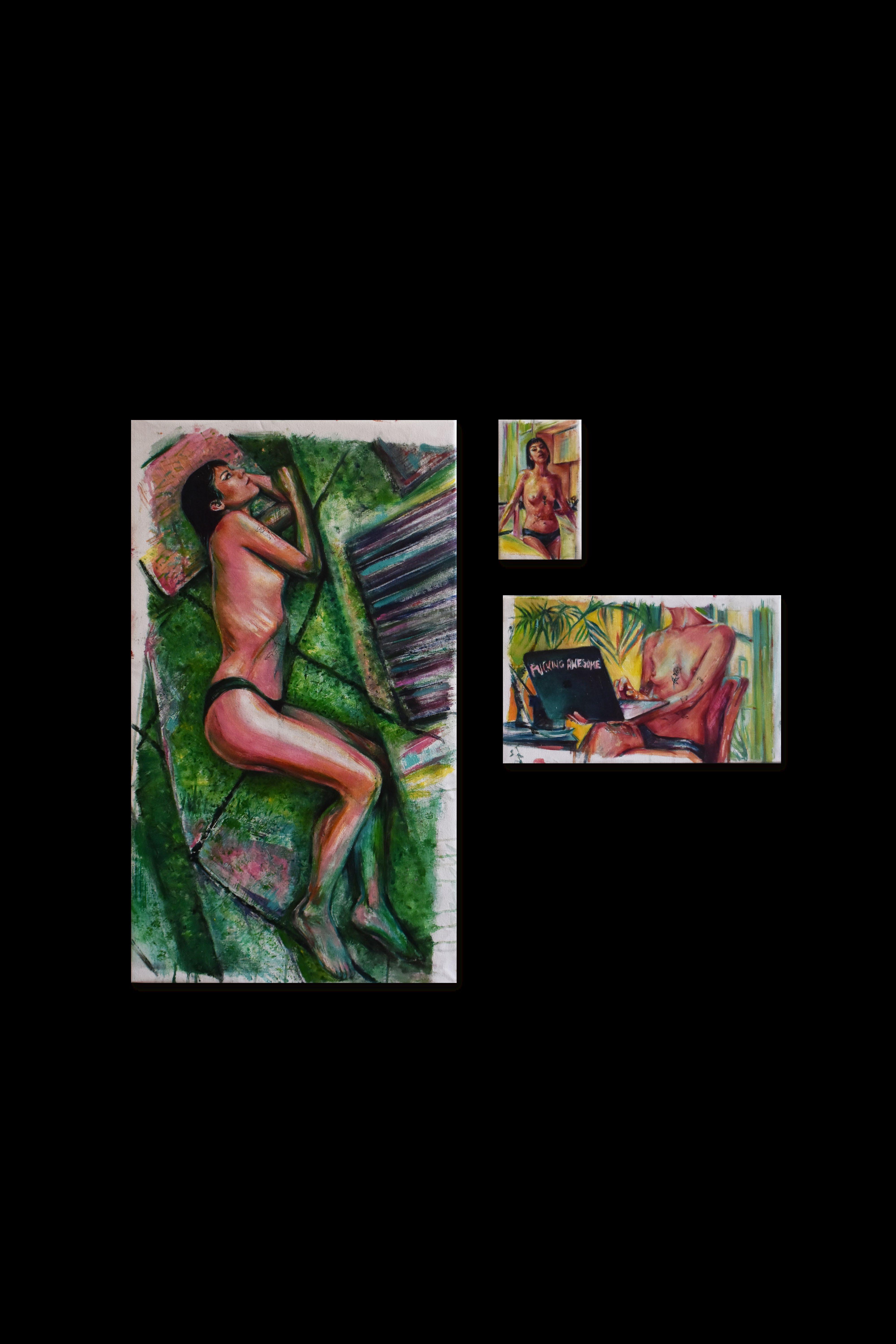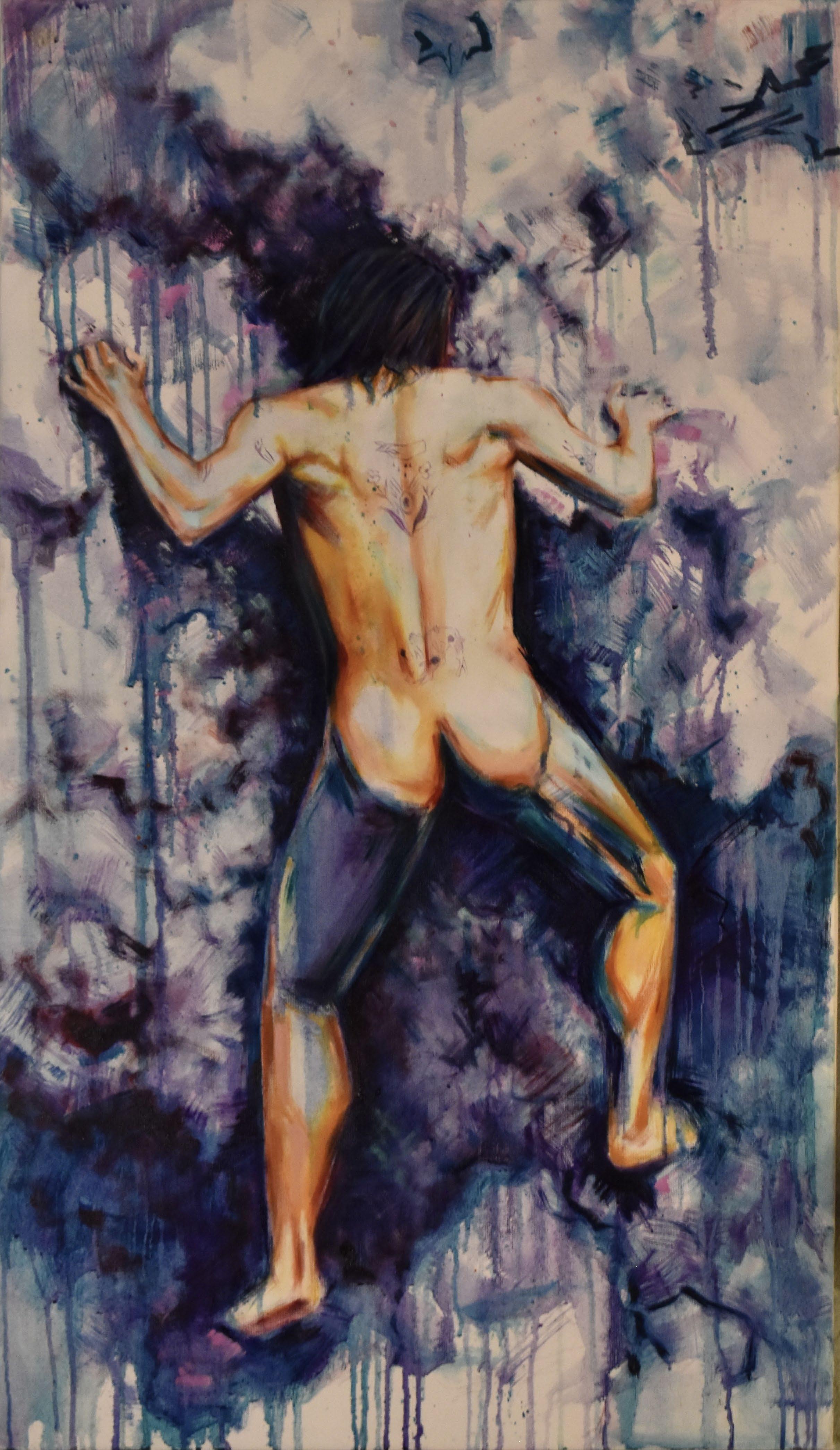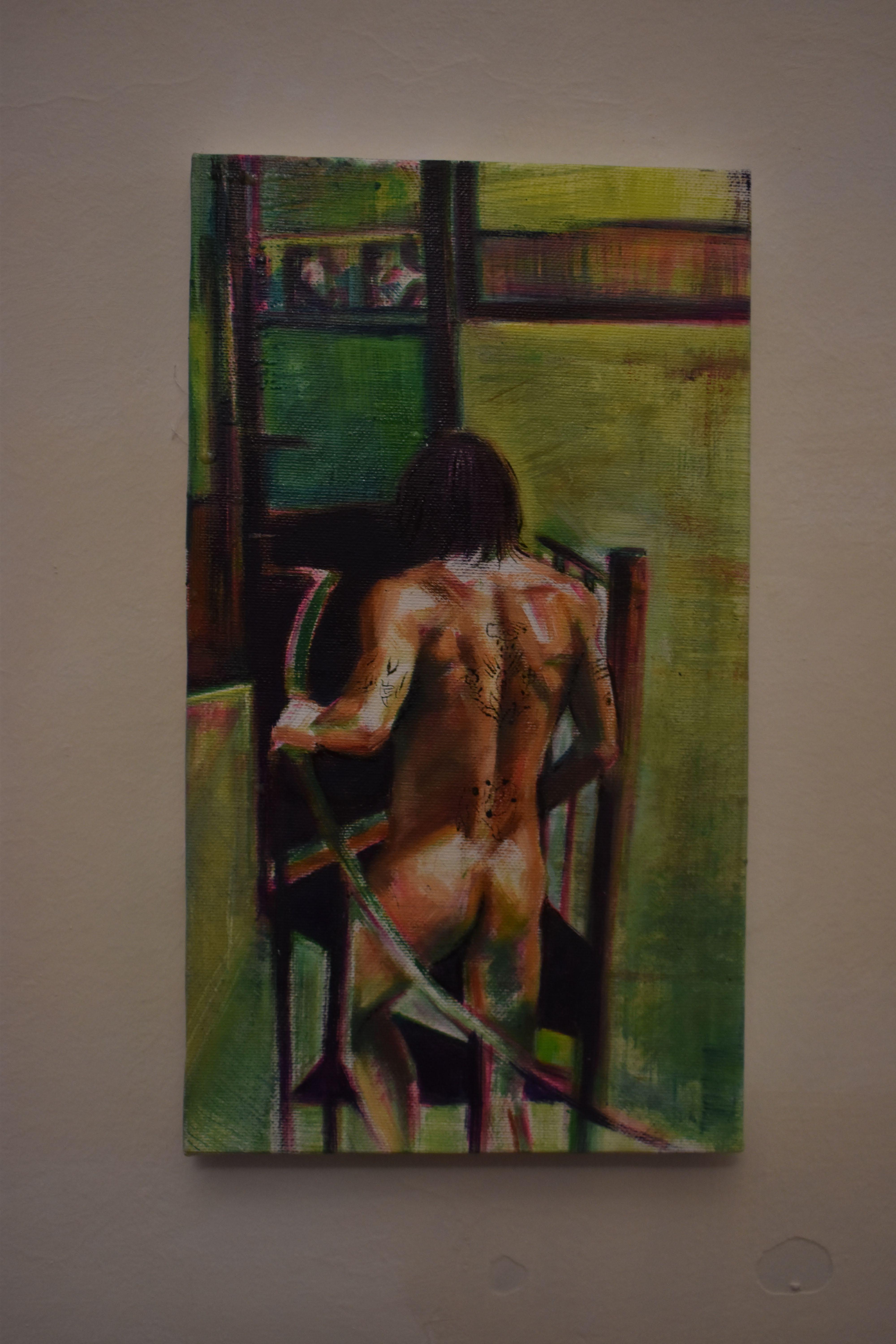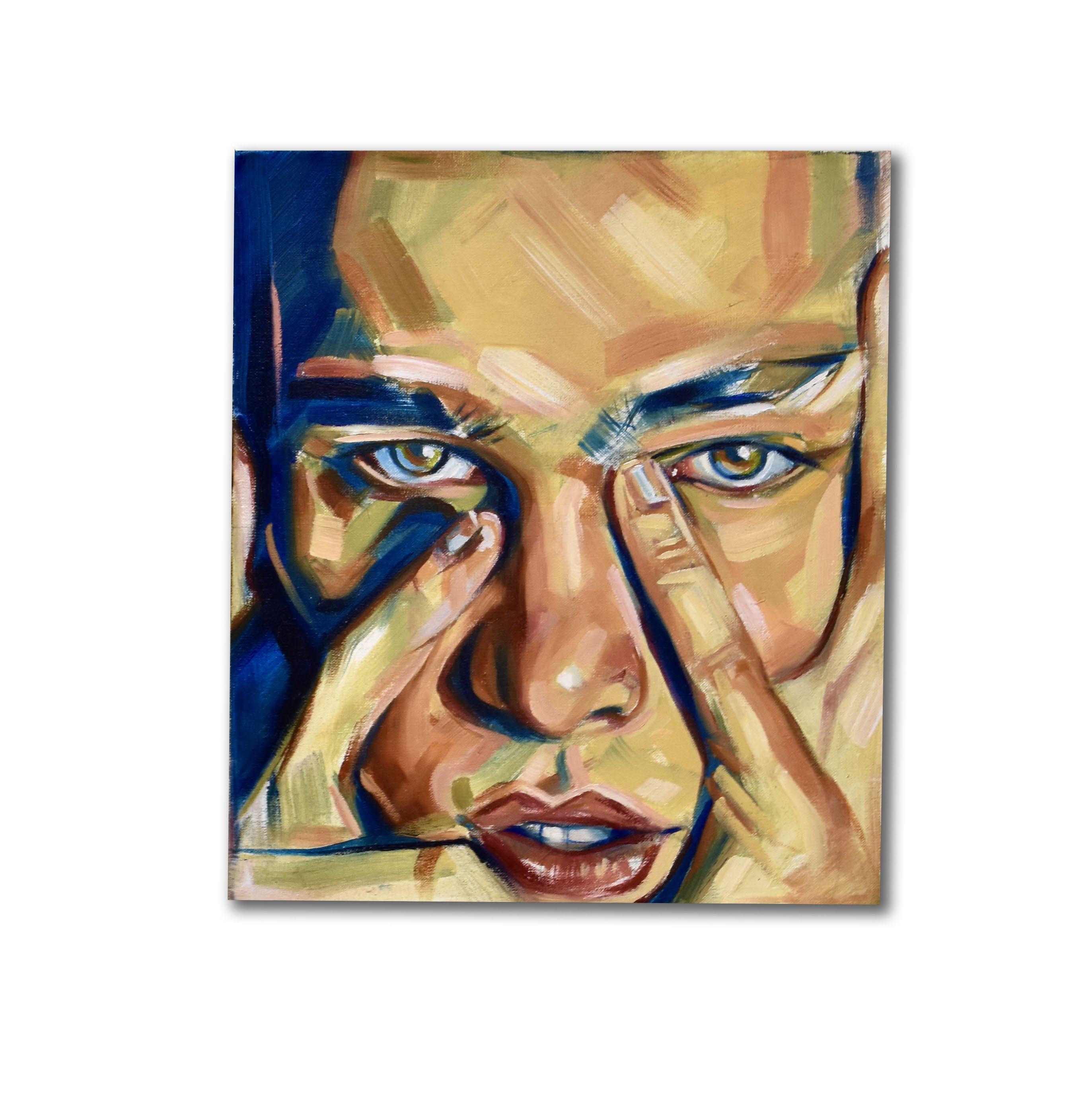 Through his musework, the reproduction of their-self is done with the purpose of becoming real, natural. Capturing them - himself of the other - in moments revealing intimate personal truths. Rather it be through chromatic language, or the rips and burns in the canvas, the subject is rebelliously dissected and reinterpreted by various meands. For Javi, the energy created between artist and muse, between gazer and the gazed, is nevessary. An attempt at complete harmony with the self, through the other.