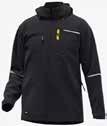 De buitenlaag is water- en vuilafstotend. Praktische zakken met rits en een kangoeroe zak op de rug voor handschoenen en dergelijke. Voorzien van een lang rugpand.