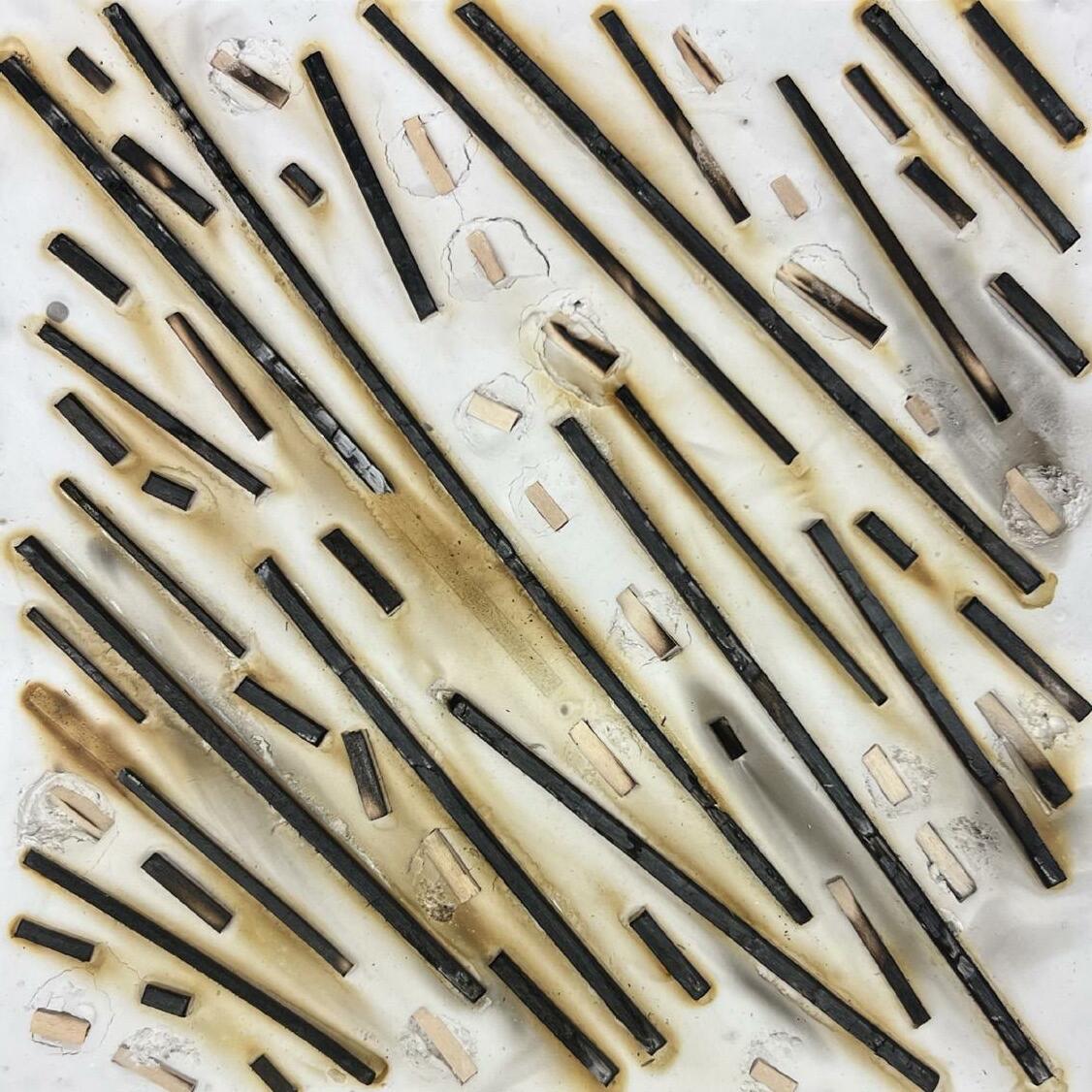 The second series estimate the effects of nearby fires, and how creosote starts taking over and darkening the material. Normally, this is seen as chaotic, dirty, messy, and disruptive, but what if instead one pushes for the use of these materials and their ability to change, and allow for their natural transformation to happen to inform time and weathering through space?