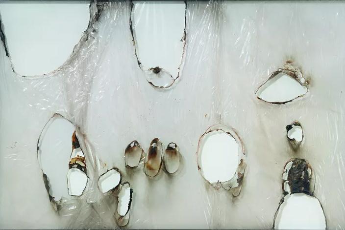 Italian artist (1915 - 1995). As a prisoner of war during World War II, his art expresses the trauma and suffering he experienced. He is known for the use of unconventional materials in his artwork, including his series in which he eradicates plastic. Although he is applying heat to the material, it is the plastic that determines how and what organic form to take. He conceptualizes that the artist doesn’t have full power over what will happen to the piece.