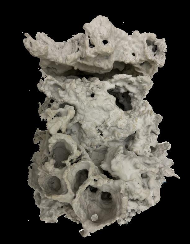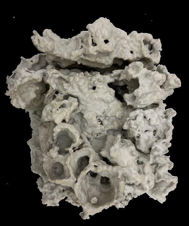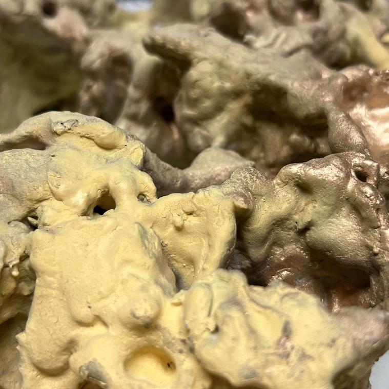 The results of the cuts were more intricate, and even more so when I was able to still melt some more of the foam, creating a different effect on the voids than the previous models. Also, I noticed that some of the layers are sometimes easy to see from a distance, like the difference between plaster, Rockite, or paint, but others require closer attention as the details are smaller, involving the multiple layers of paint. People’s level of engagement with the artifacts determines how much information they can perceive.