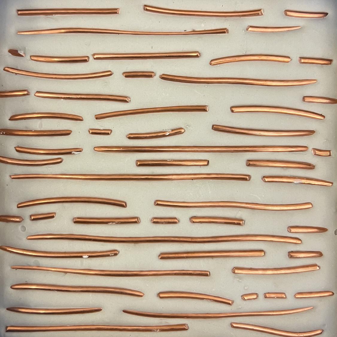 I developed a series of study models to understand not only how the materials themselves would change, but also how these would affect the surface of what they are being casted on. To do these, I used blue foam, wood, steel and copper. The blue foam model was able to capture the materials form as this was later melted, while residues of it were left behind. The wood model, which was burnt, and the steel and copper models not only demonstrated the transformations of the materials themselves, but also how they left residues on the plaster without altering their form.