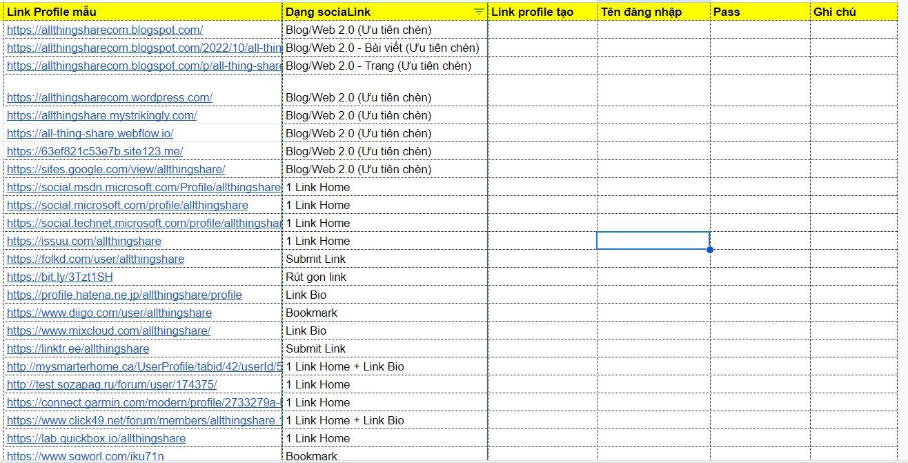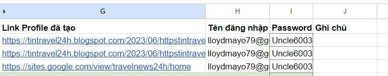 Bước 3: Cập nhật và lưu trữ Link Profile Social + Tên đăng nhập + Pass.