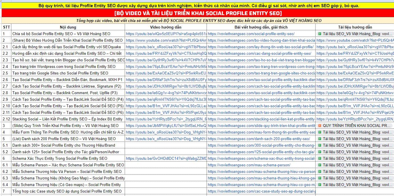 Bộ quy trình, tài liệu Profile Entity SEO được xây dựng dựa trên