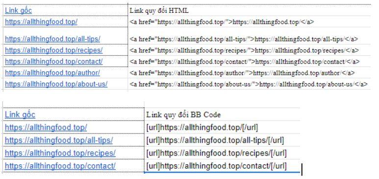 dụng định dạng link HTML Link và BB Code, các bạn tiến