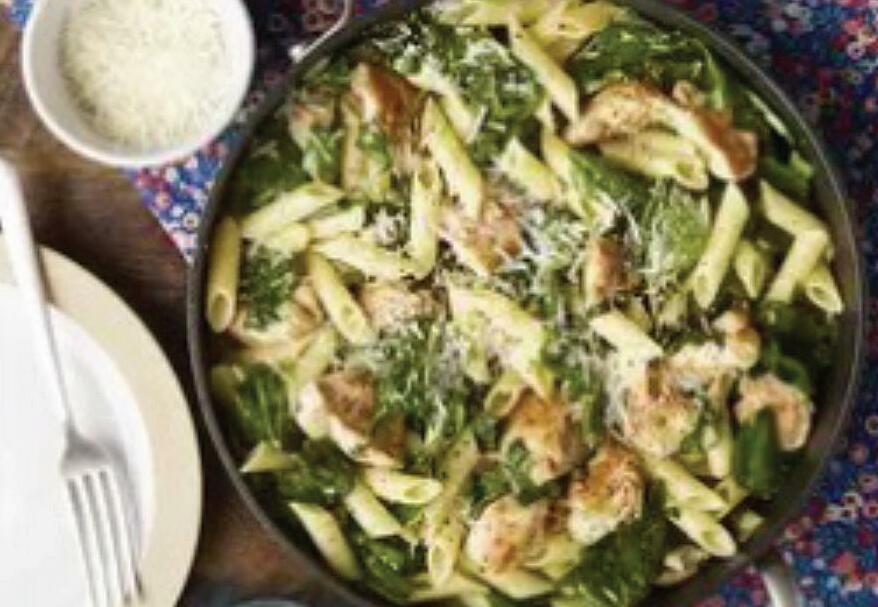Pasta con Pollo y Espinaca Salteada, con Limón y Parmesano