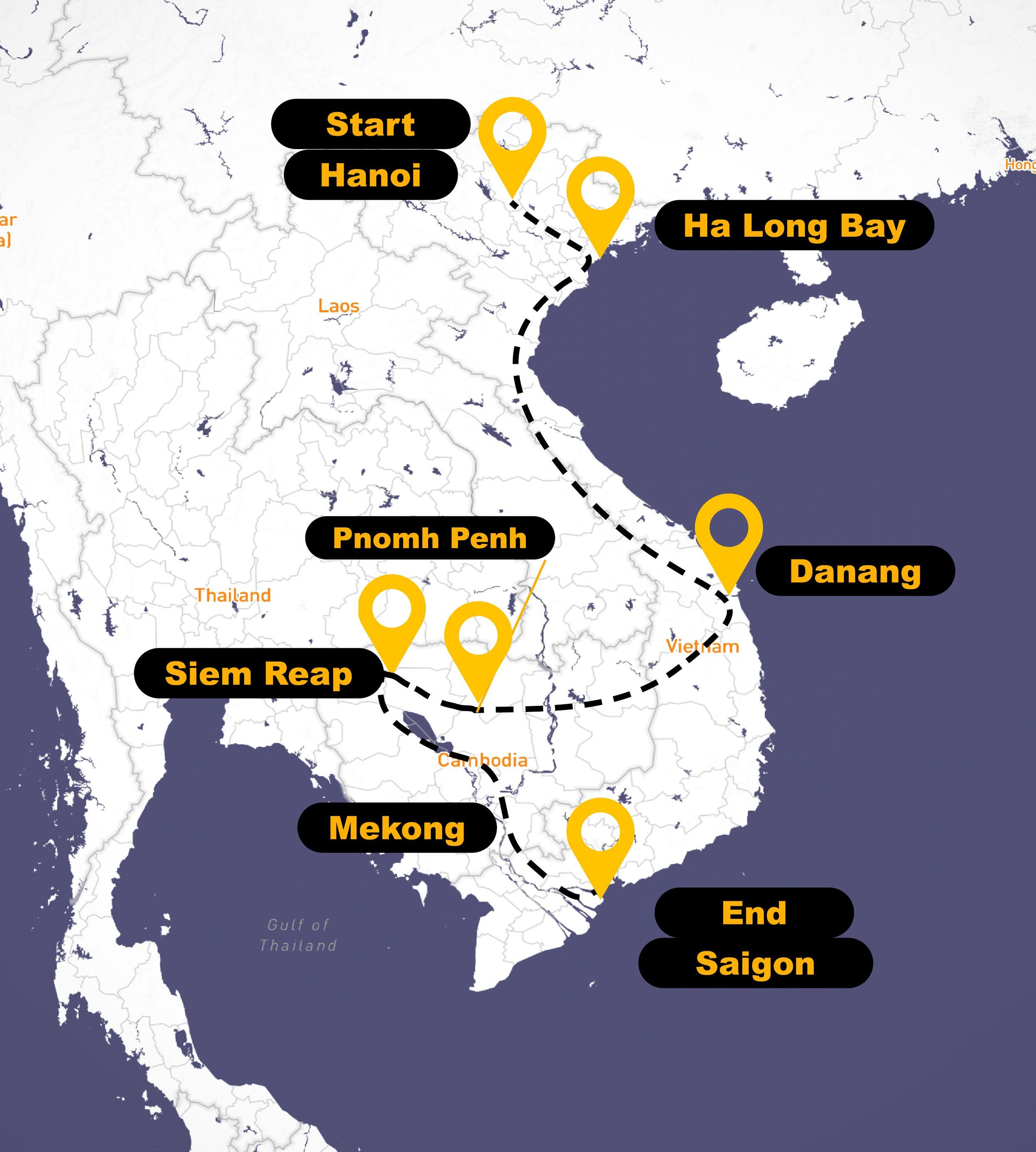 • Pre/Post trip stays in Hanoi, Ho Chi Minh or other destinations