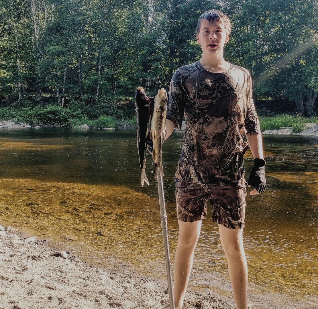 That evening our graduate and his dad went fishing on Little Round Pond, they found a spring hole and had some great brook trout fishing. In fact, the son said it was the best fishing he ever had in his life! They also said a moose came out feeding on the pond that evening and it wouldn’t move no matter how close they got.