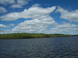 We had a lot of rain the day before our trip so the water level in the stream was very nice. The three mile paddle to the lake was easy and uneventful except for the sweeper (tree across the stream) which we avoided.
